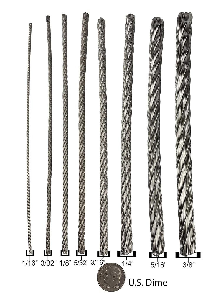 5/16 "x 300' 7x19 نوع 304 حبل أسلاك الفولاذ المقاوم للصدأ (MBL: 9000 رطل)