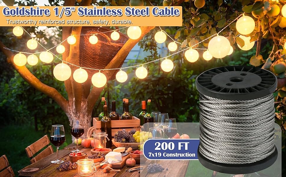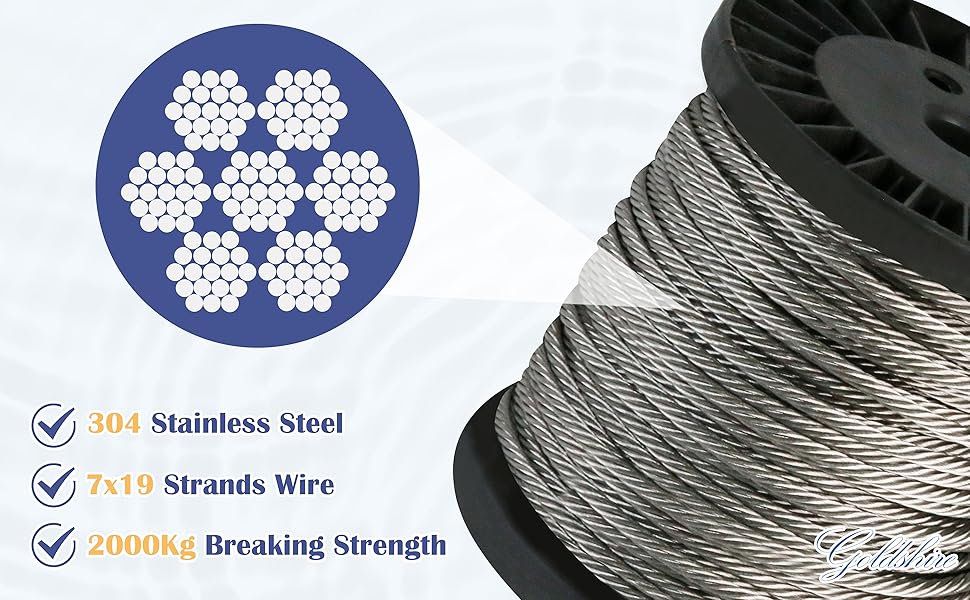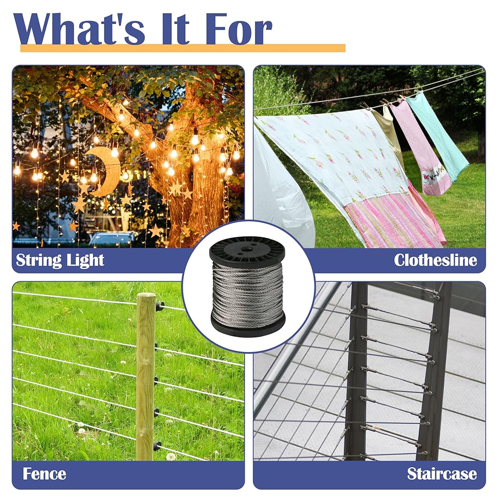 【استخدامات متعددة】يتميز الحبل السلكي من Goldshire بالمرونة والقدرة على التحمل، وسهل التعامل معه. إنه يخلق أشكالًا وانحناءات ومنحنيات مخصصة دون عناء. تجد هذه المادة متعددة الاستخدامات تطبيقات في إعدادات مختلفة، بما في ذلك دعم الأضواء الخيطية، وبناء درابزين الكابلات وأنظمة الدرابزين على سطح السفينة DIY، وتعليق تركيبات الإضاءة، وتوفير الدعم في الساحات والحدائق وخطوط الغسيل.