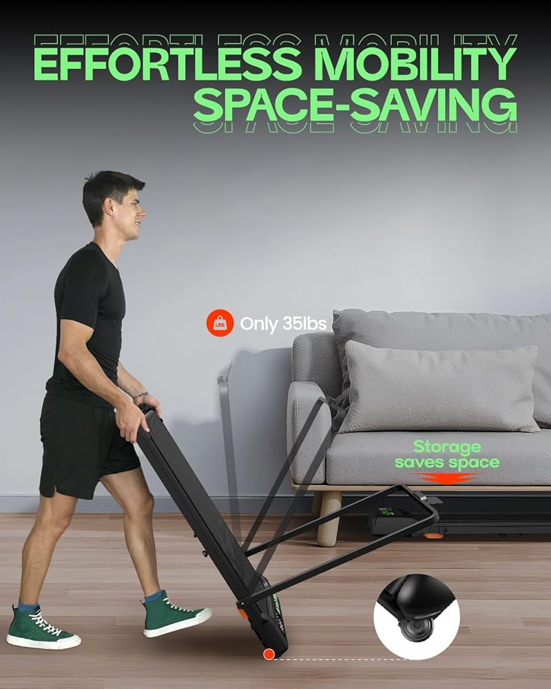 تصميم ذكي من حيث المساحة وإمكانية التنقل المحسنة: استمتع بوظائف متعددة الاستخدامات مع مقود آمن قابل للطي يتكيف مع أسلوب التمرين - استخدم جهاز المشي هذا في وضع مستقيم لتحقيق الاستقرار لكبار السن والركض المكثف أو قم بطي جهاز المشي القابل للطي لأسفل للتخزين السلس تحت المكتب. على الرغم من المتانة الإضافية (الآن 42 رطلاً)، تضمن العجلات الأمامية المدمجة سهولة نقل جهاز المشي المدمج هذا. يمكن وضع إطاره المدمج (49 سم عرضًا × 110 سم طولًا) بسهولة أسفل الأثاث لتوفير المساحة.