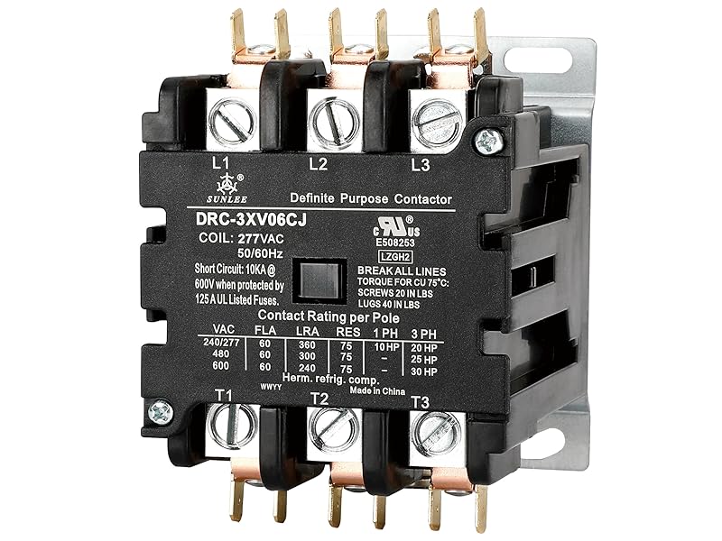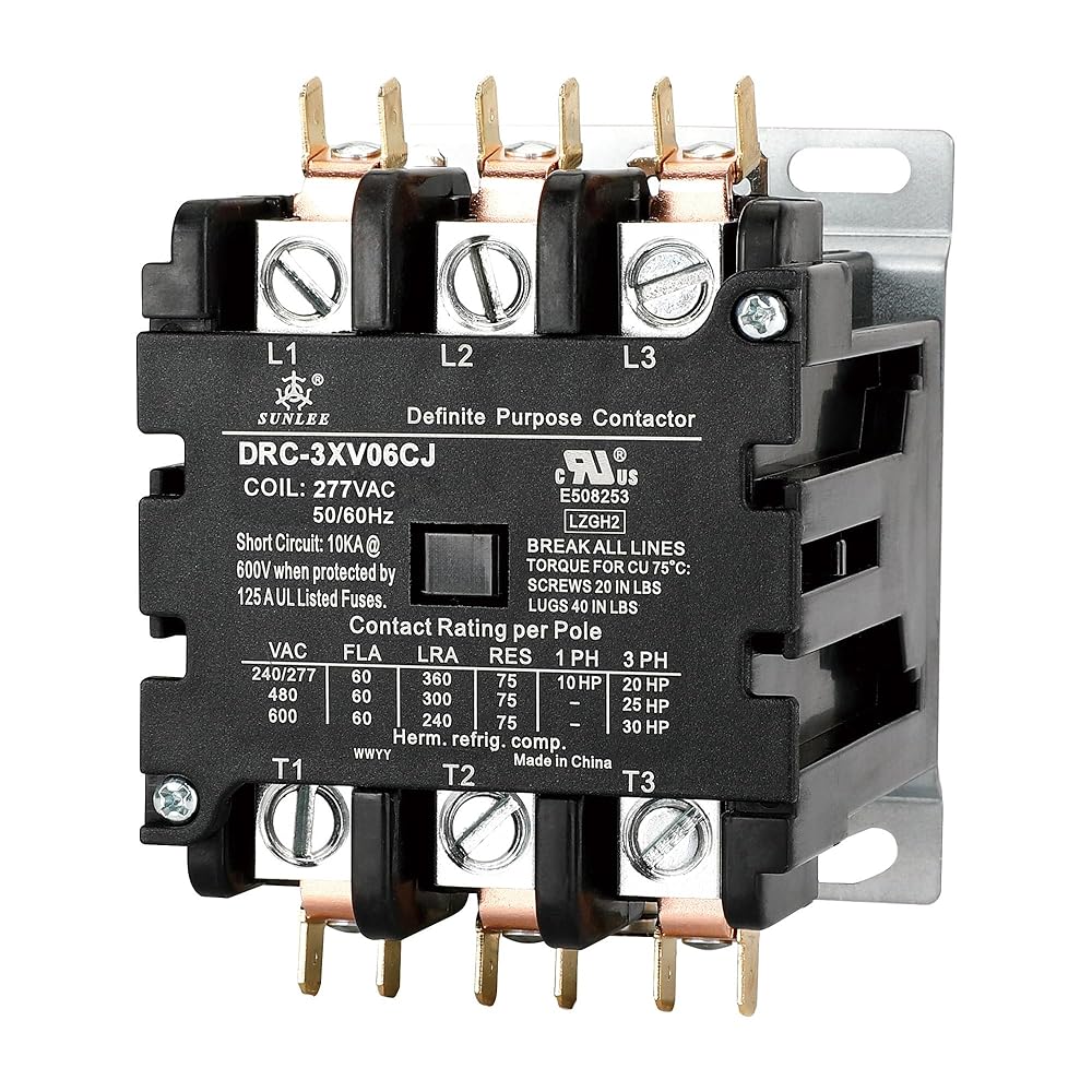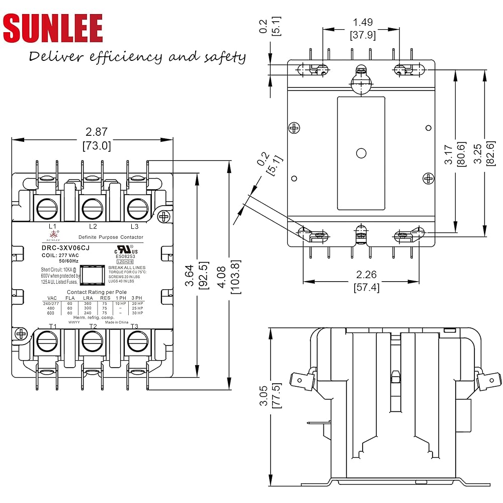 SUNLEE 60 Amp 75 RES 3 Pole 277v Coil SunLee DP Contactor A2L متوافق مع UL المعترف به والمعتمد لموصل الإضاءة UL 60335 المكافئ 42EF35AF