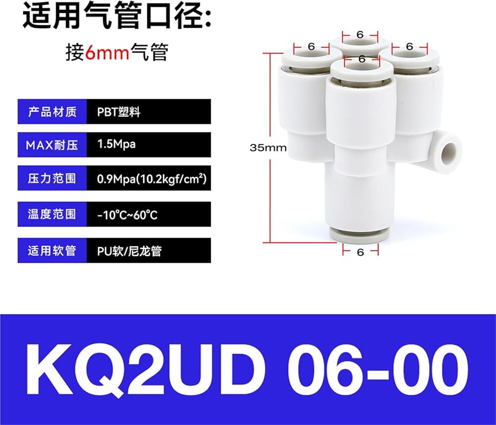 موصل هوائي بخمسة اتجاهات على شكل Y KQ2UD04-06 القصبة الهوائية سريع بقطر متغير PRG08-10 رباعي الاتجاهات 1 قطعة(五通KQ2UD06-00(PRG6-6))