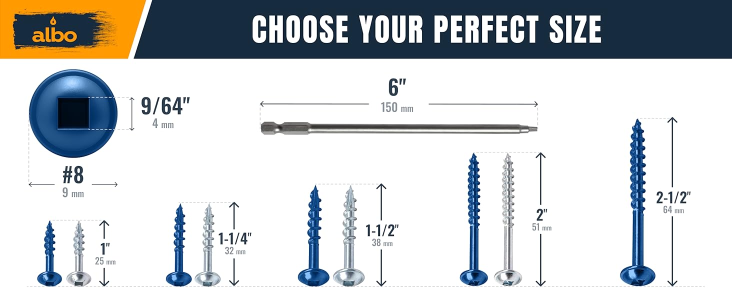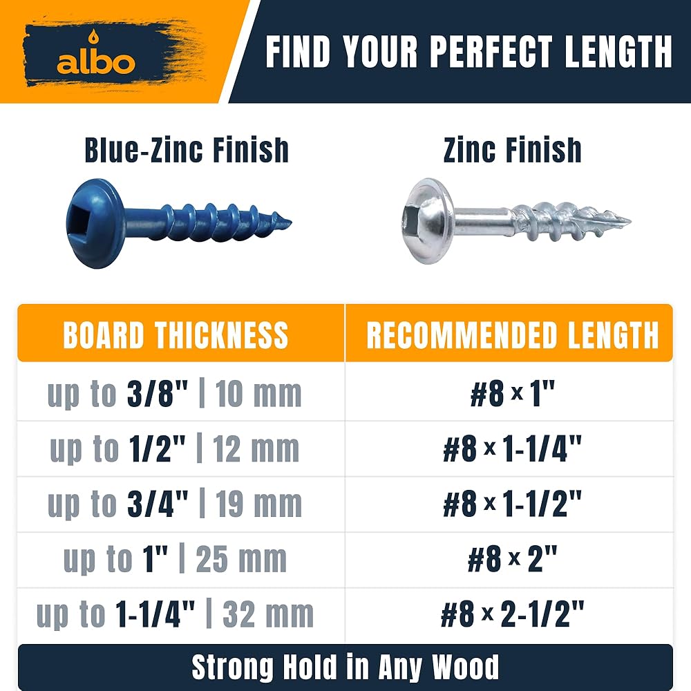 الحجم الأمثل لسمك الخشب العادي. تعتبر البراغي #8 × 1-1/4 بوصة مثالية لربط الألواح السميكة، والتي تُستخدم عادةً في الخزانات والإطارات والوصلات الخشبية الهيكلية.