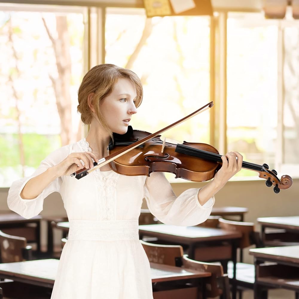 Glarry GV406 Violin Kit includes a violin, 1 square case, 2 bows, 1 extra set of violin strings, 2 violin bridges, 1 rosin, 1 adjustable shoulder rest, 3 In 1 Digital Metronome Tuner Tone Generator. The set includes all the necessities to start learning how to play. It's a great choice as a gift or a learning start for beginners.