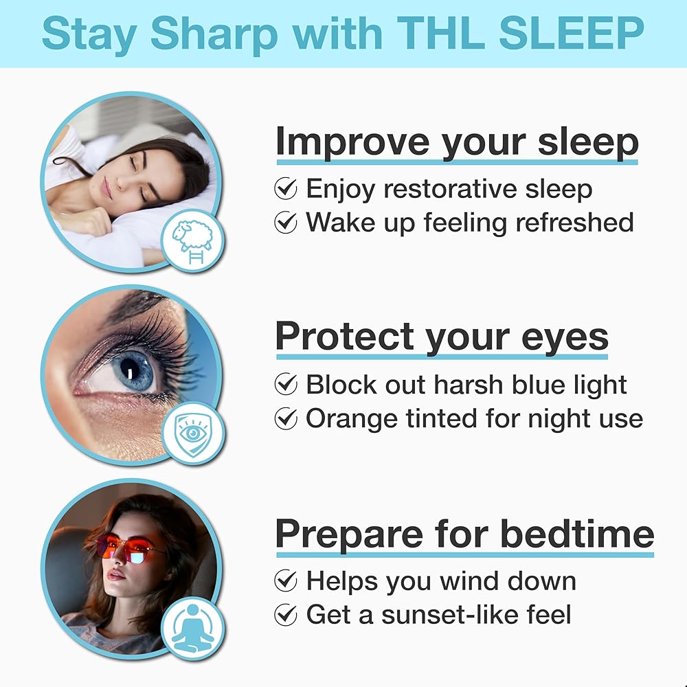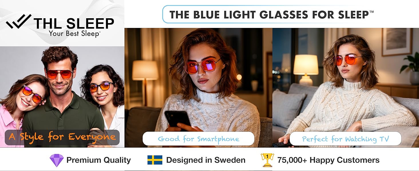 مهندس النوم - استمتع براحة عميقة مع نظارات THL SLEEP الزرقاء للنساء والرجال؛ لقد تم تصنيعها بخبرة على يد المهندس السويدي أوسكار إريكسون، الحاصل على ماجستير. لتقليل التعرض للضوء الاصطناعي الضار