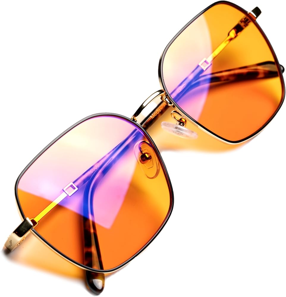 نظارات برتقالية زرقاء تحجب الضوء من أجل نوم أفضل - نظارات الصداع النصفي للكمبيوتر البرتقالية الفاخرة المصنوعة من العنبر المقاوم للصدأ للنساء والرجال - العنبر fl 41 حاصرات الضوء الأزرق للألعاب لإجهاد العين والتعب