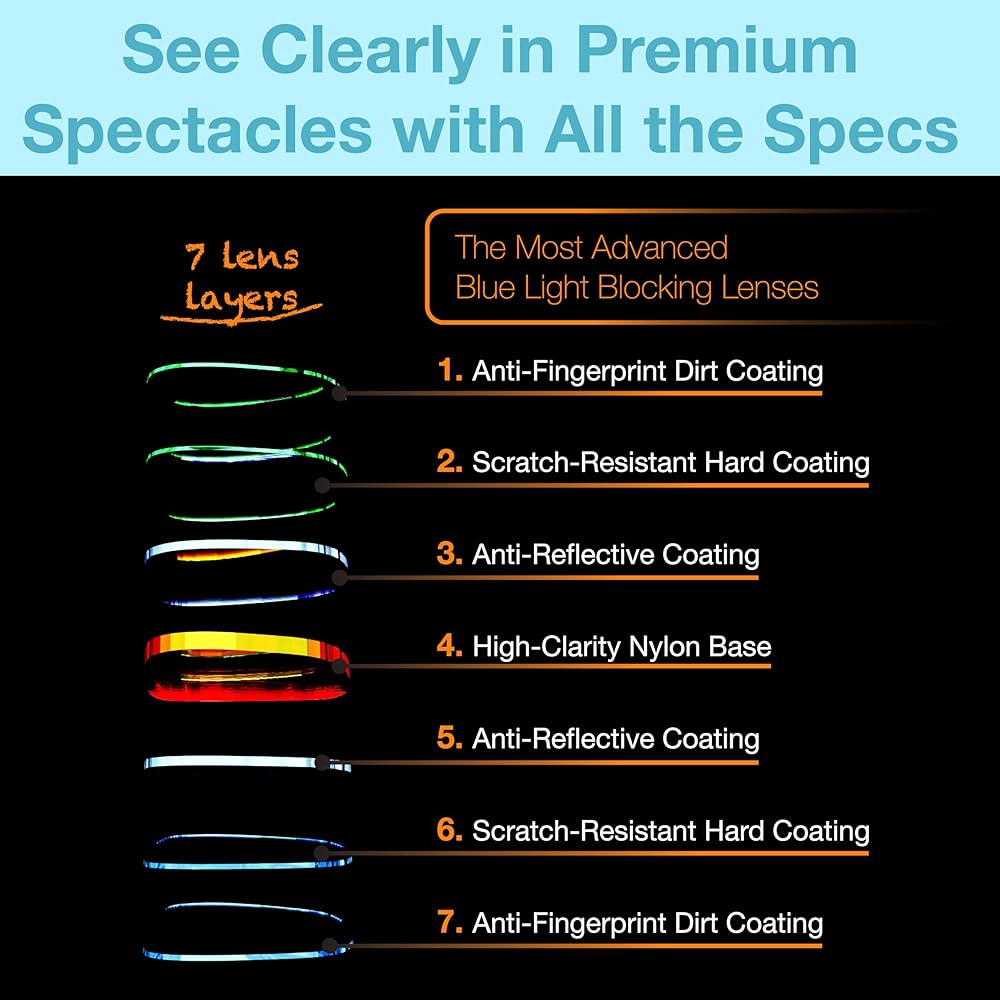 الوضوح والمرونة - ارتدي نظارات الضوء الأزرق للرجال والنساء بثقة؛ تتميز بعدسات برتقالية اللون مكونة من 7 طبقات مصنوعة من النايلون الفاخر مع طلاءات مضادة للزيوت وبصمات الأصابع ومضادة للانعكاس ومضادة للوهج.