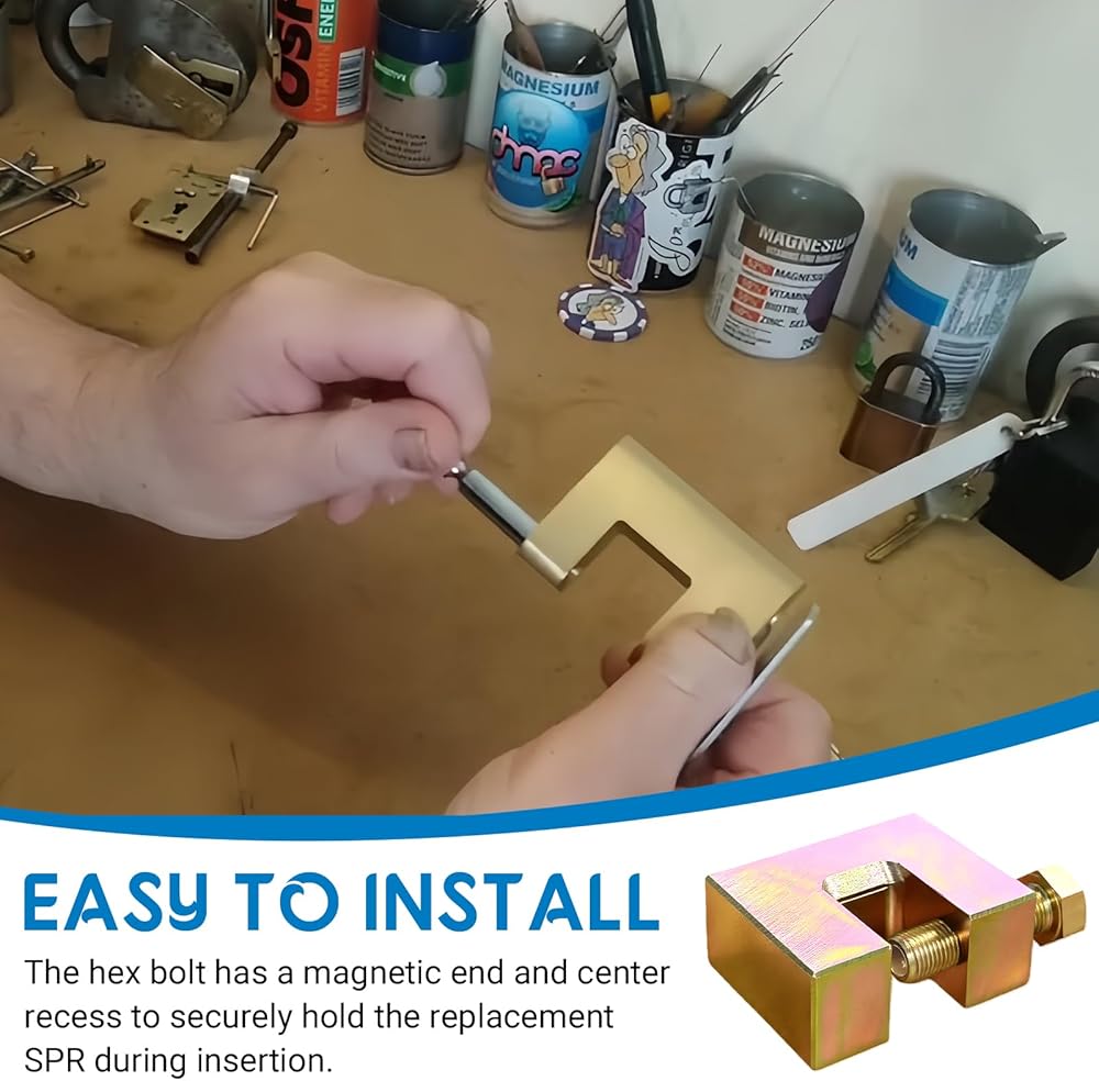 • Rivet Handling: The hex bolt end is magnetized with a central groove to securely hold replacement self-piercing rivets during the riveting process.
