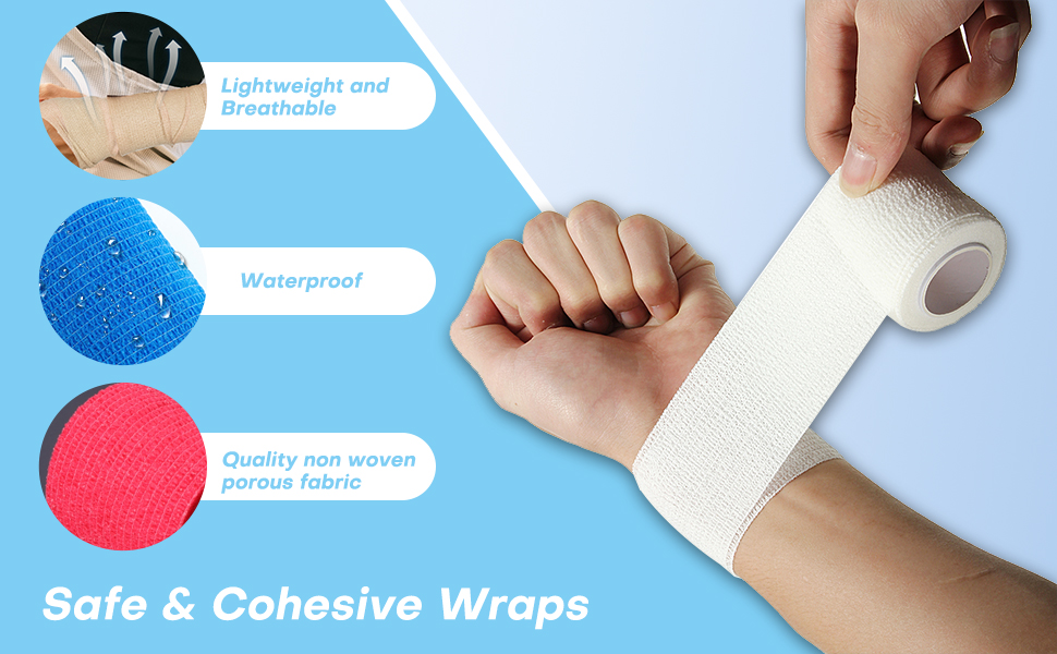 • 【غلاف ضمادة ذاتية اللصق ممتاز】لفافة ضمادة ذاتية اللصق من Fenhupe مصنوعة من نسيج مسامي موثوق به ومواد غير منسوجة، مما يضمن أنها ناعمة ومسامية ومرنة.
