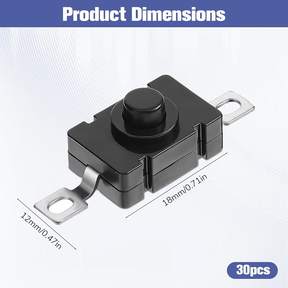 PRODUCT CONTENT:Receive 30 high-quality latching mini switch, each measuring 18 x 12 mm (0.7 x 0.47 inches) – good for a variety of projects. (Pin dimensions not included)