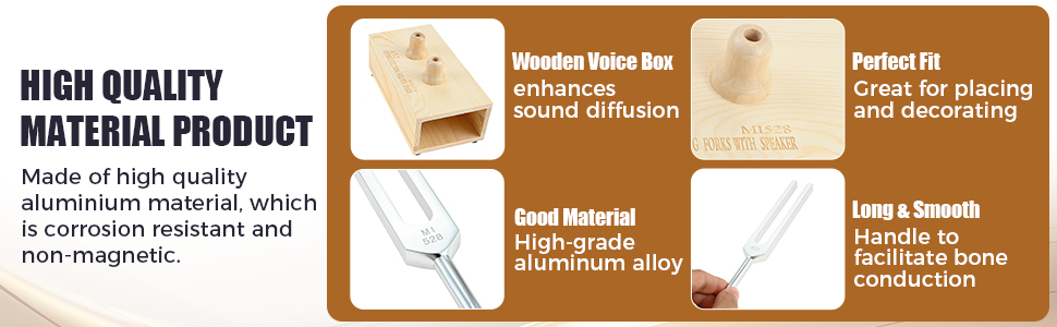【صندوق صوت خشبي】صندوق رنين الشوكة الرنانة مصنوع من خشب الجوز، ويتم وضع شوكة الضبط على مكبر الصوت الخشبي هذا، والذي له تأثير تضخيم. يتم تعميق واستقرار النغمات الرنانة الغنية، مما يسمح بتجربة استماع أكثر غامرة وراحة.