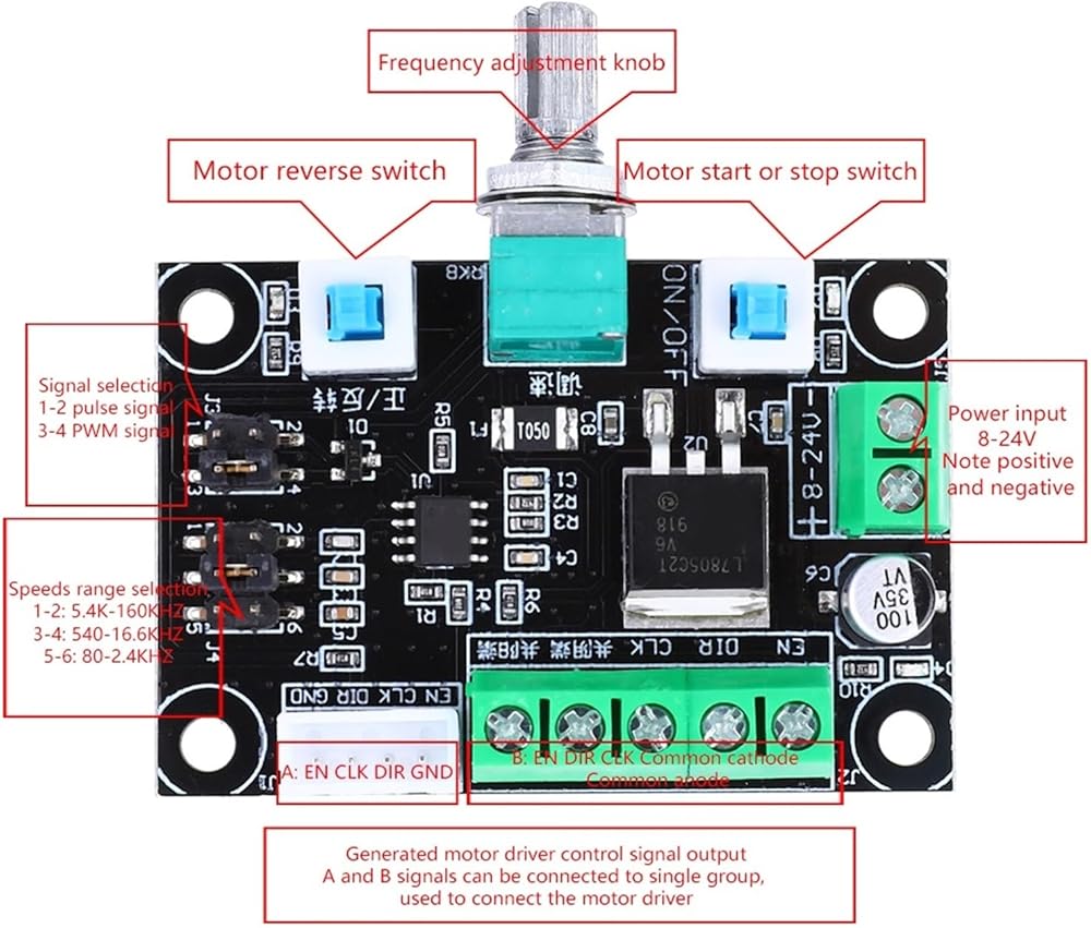 The controller has three frequency signals: high 5.4k-160khz, medium 540-16.6khz, and low 80-2.4khz.