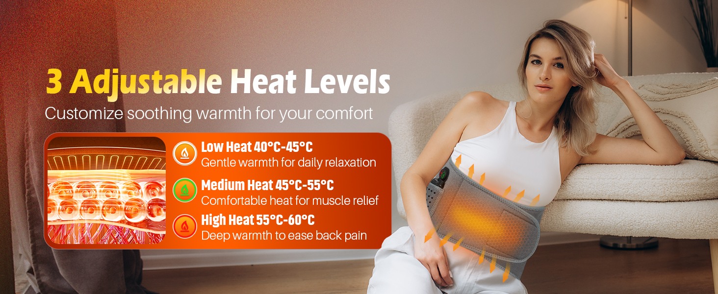 【وسادة تسخين ذكية لتخفيف آلام الظهر مع 3 مستويات للحرارة】 تتميز وسادة التسخين اللاسلكية هذه لتخفيف آلام الظهر بـ 3 إعدادات حرارة قابلة للتعديل (104 درجة فهرنهايت - 140 درجة فهرنهايت / 40 - 60 درجة مئوية) لتتناسب مع احتياجات الراحة الخاصة بك. تم تصميمه بتحكم ذكي في درجة الحرارة، فهو يسخن بسرعة ويحافظ على دفء مستقر وآمن للمساعدة في تخفيف آلام العضلات وآلام أسفل الظهر وتوتر الخصر وعدم الراحة في البطن - وهو مثالي للاسترخاء اليومي في المنزل أو العمل.