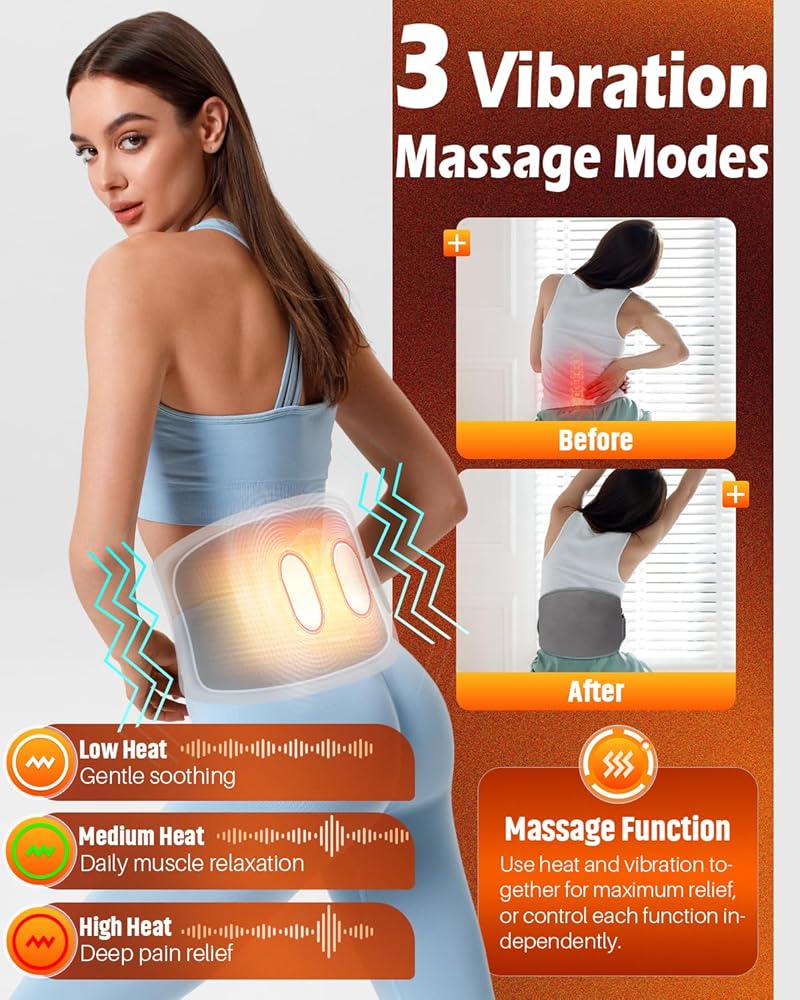 【مدلك خلفي ساخن مع 3 أوضاع اهتزاز】 تم تصميم وسادة التسخين القابلة للارتداء هذه كمدلك ساخن للظهر، وتجمع بين العلاج الحراري المهدئ وتدليك الاهتزاز على 3 مستويات. تساعد المحركات المزدوجة على استرخاء العضلات المشدودة وتخفيف التيبس وتقليل التعب بعد ساعات طويلة من الجلوس أو القيادة أو العمل. مثالية بمثابة وسادة تسخين للتشنجات وأسفل الظهر والوركين والبطن.
