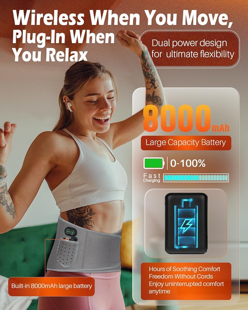 【وسادة تدفئة لاسلكية مع بطارية 8000 مللي أمبير في الساعة】 استمتع بالحرية الحقيقية مع وسادة التدفئة اللاسلكية هذه التي تعمل ببطارية قابلة لإعادة الشحن 8000 مللي أمبير في الساعة (متضمنة)، مما يوفر ما يصل إلى ساعات من الاستخدام المستمر. لا حاجة إلى أسلاك - استخدمه أثناء القيام بالأعمال المنزلية أو التنقل أو العمل على مكتبك أو الاسترخاء على الأريكة. يشتمل على سلك تمديد لاستخدام المكونات الإضافية الاختيارية في أي وقت.