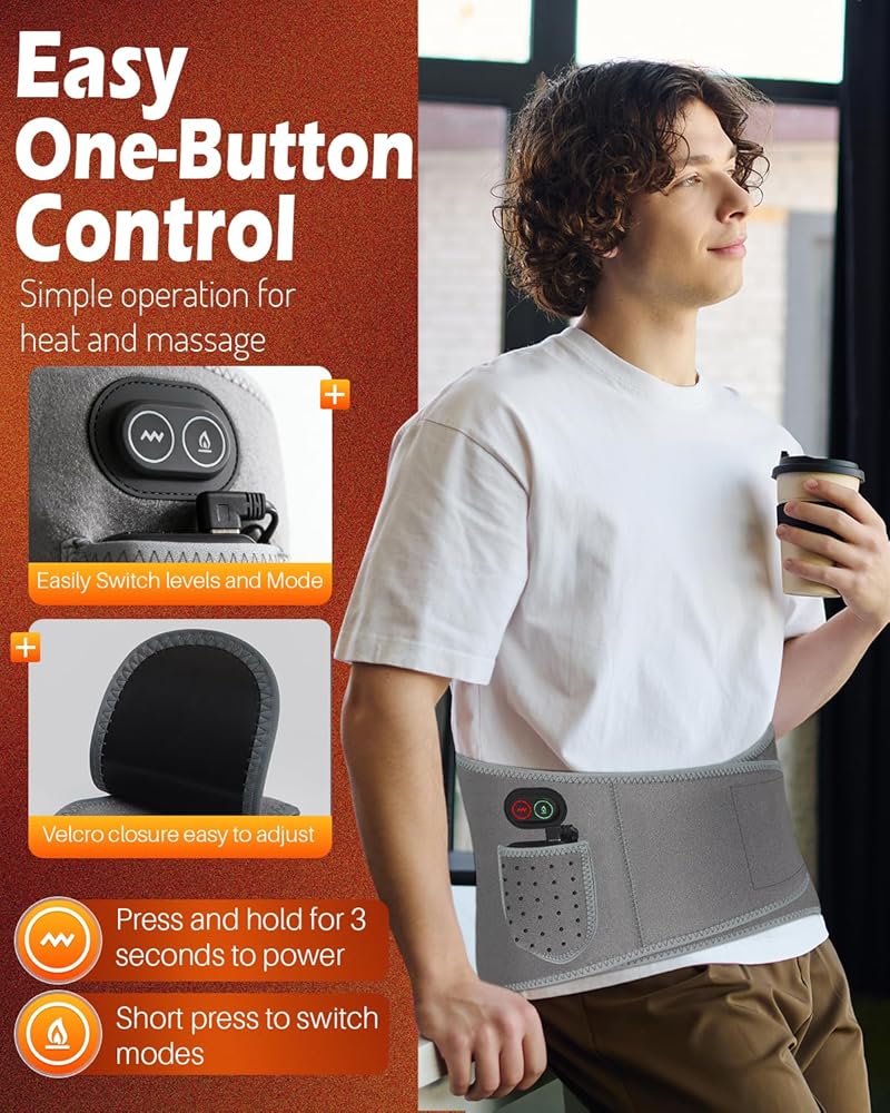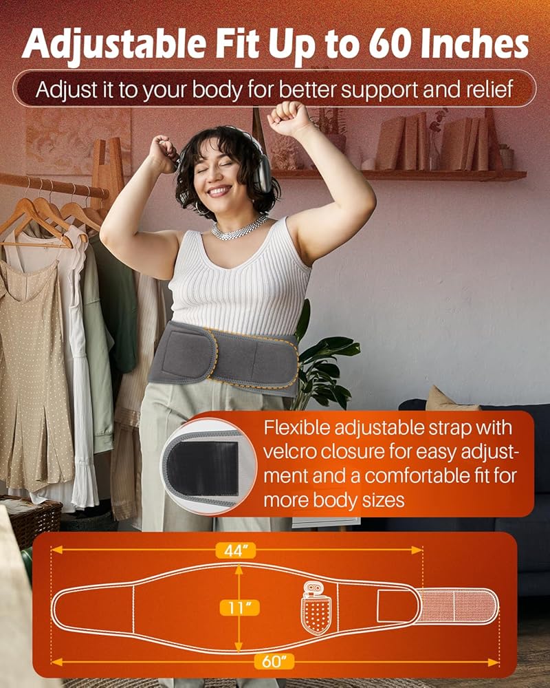 【حزام خصر ساخن قابل للتعديل يناسب معظم الأشخاص】 مصنوع من نسيج قطيفة ناعم وصديق للبشرة، يوفر حزام الخصر الساخن هذا ملاءمة مريحة وآمنة. الحزام المرن القابل للتعديل مع حزام تمديد يناسب ما يصل إلى 60 بوصة، مما يجعله مناسبًا لمعظم أنواع الجسم. يبقى في مكانه أثناء المشي أو الجلوس أو الحركة، مما يضمن الحصول على حرارة ثابتة وتدليك في المكان الذي تحتاجه بشدة.