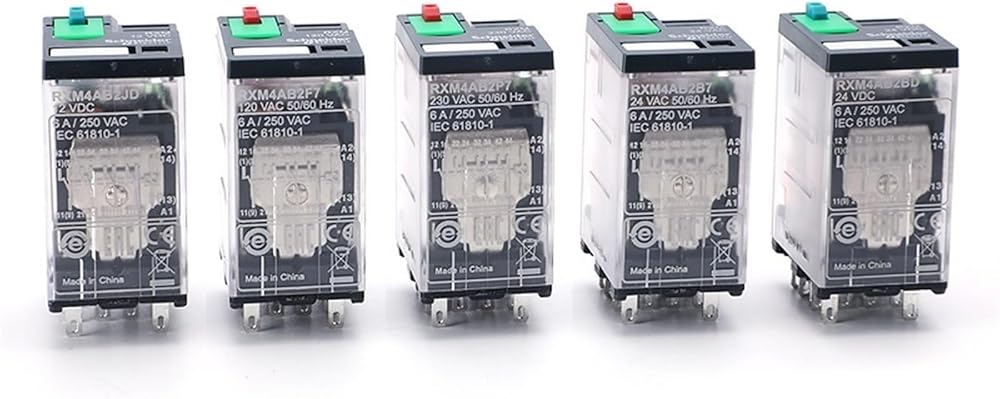 Miniature plug-in relay with LED (5 pcs) RXM4A 4CO 6A 12 VDC-110 VDC 24 VAC-230 VAC Electromagnetic
