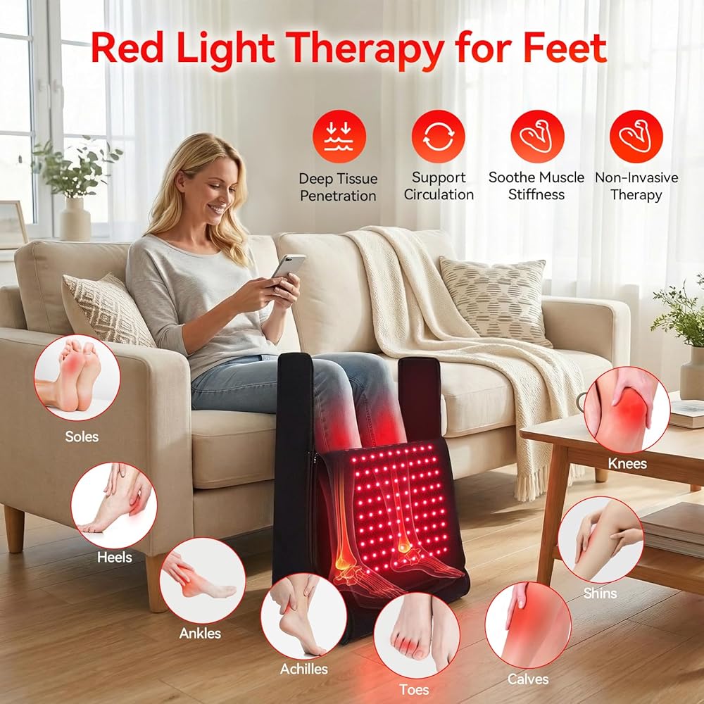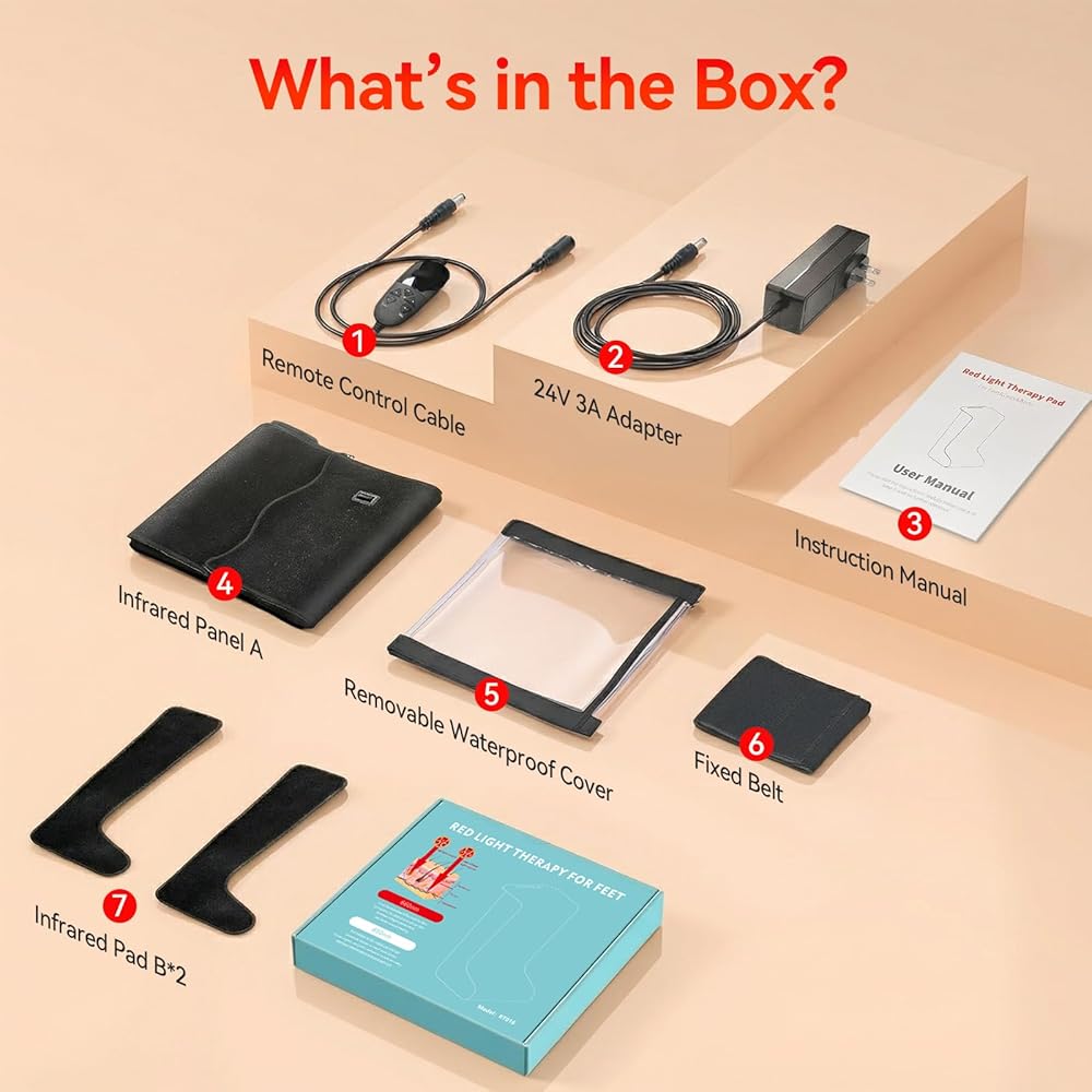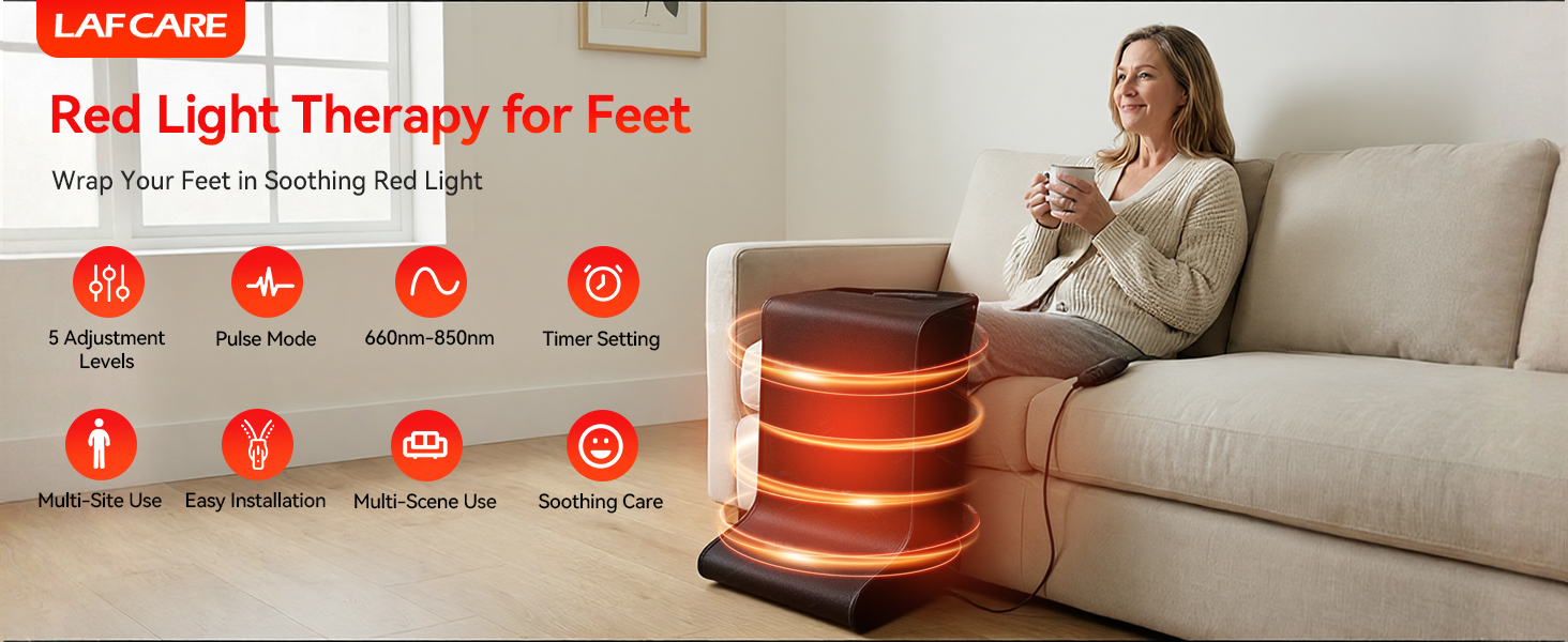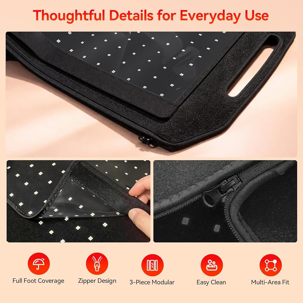 مخرج ضوء متوازن (660 نانومتر و850 نانومتر): يجمع العلاج بالضوء الأحمر للقدم بين الضوء الأحمر المرئي والضوء القريب من الأشعة تحت الحمراء لتوفير تغطية خفيفة عبر المناطق السطحية والأعمق، مما يجعله مناسبًا للاستخدام اليومي للقدم.