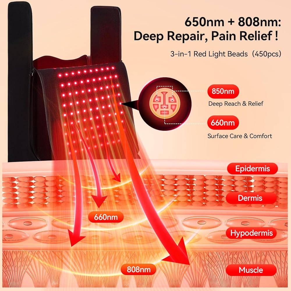 سهل الاستخدام: يتميز هذا العلاج بالضوء الأحمر للركبة بمؤقت (15-90 دقيقة)، وسطوع قابل للتعديل (5 مستويات)، ولوحة تحكم بديهية، مما يجعل الرعاية الذاتية سهلة. مثالي للاستخدام المنزلي، سواء كنت تقرأ أو تشاهد التلفزيون أو تعمل أو تسترخي ببساطة