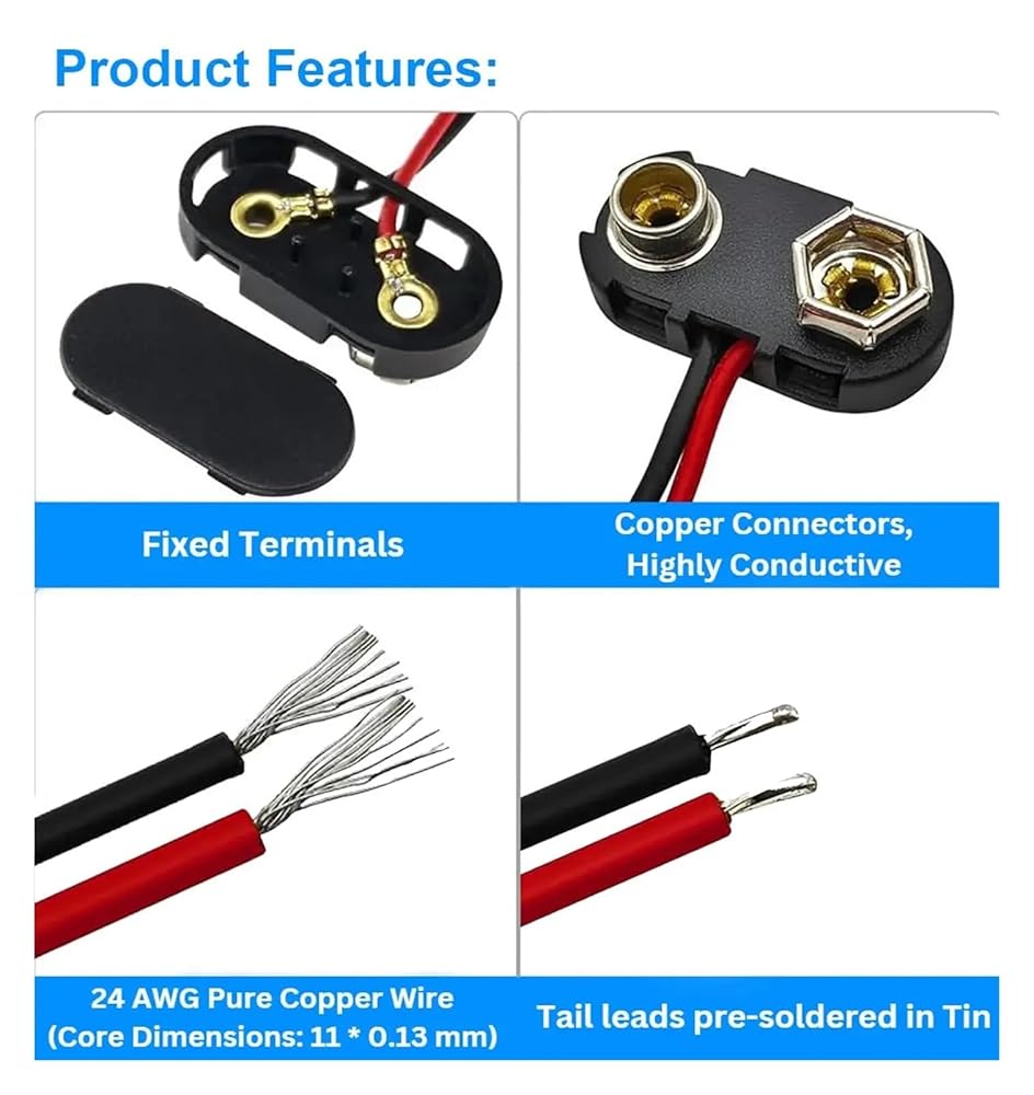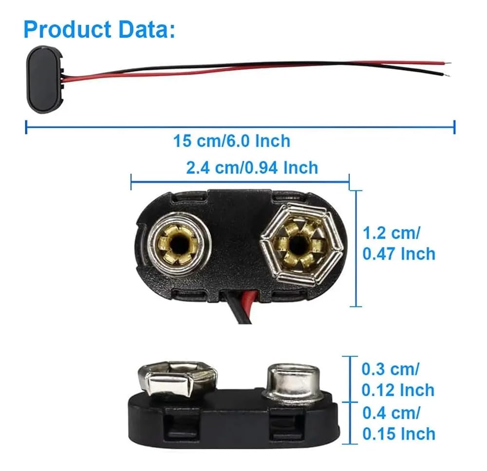Package Including10PCS * T Type Snap 9V Battery Clip Connector with Cable