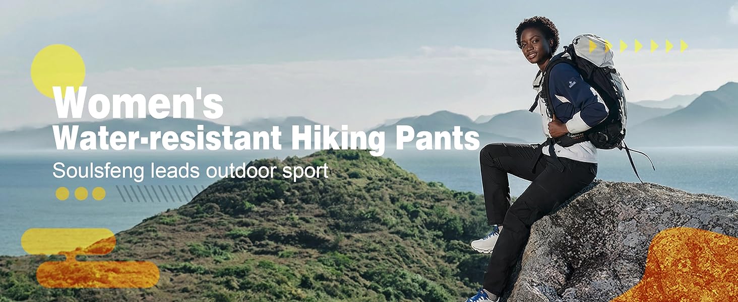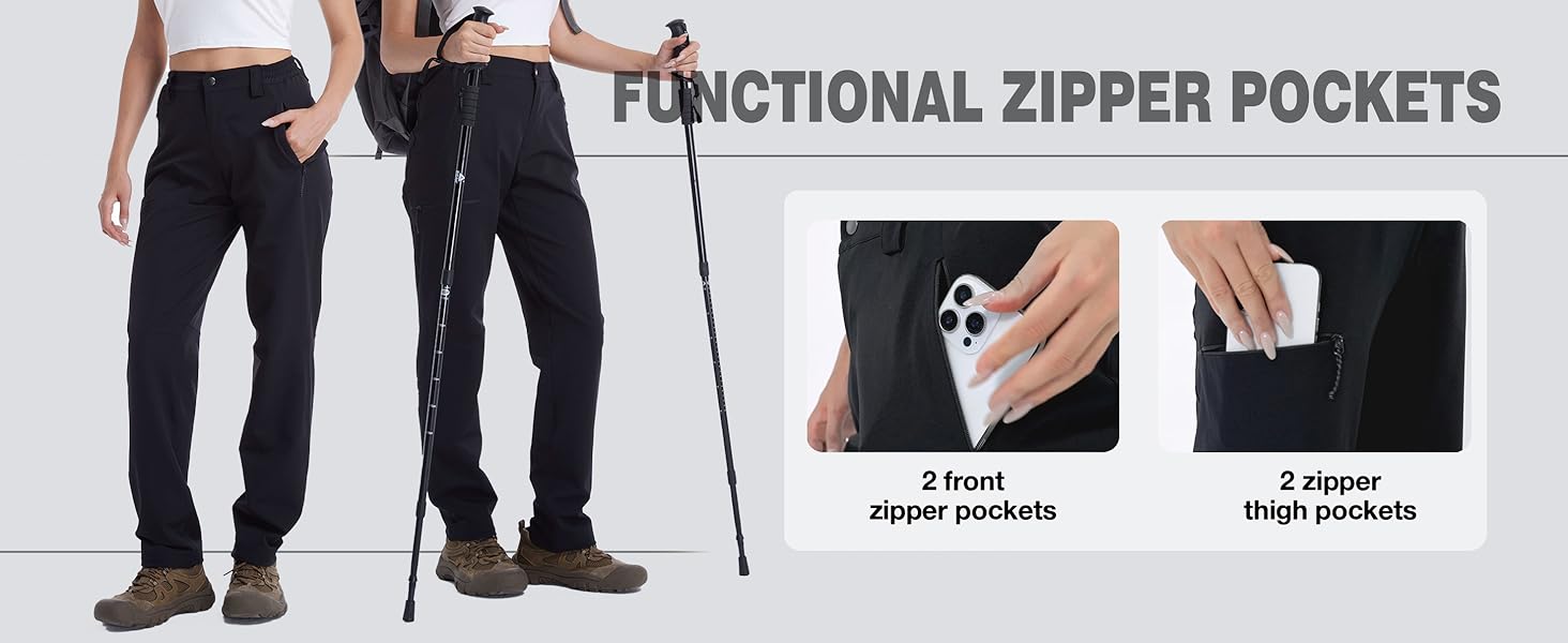 بنطال Soulsfeng النسائي للمشي لمسافات طويلة سريع الجفاف وخفيف الوزن وقابل للتمدد مقاوم للماء مع جيوب بسحاب in Kuwait
