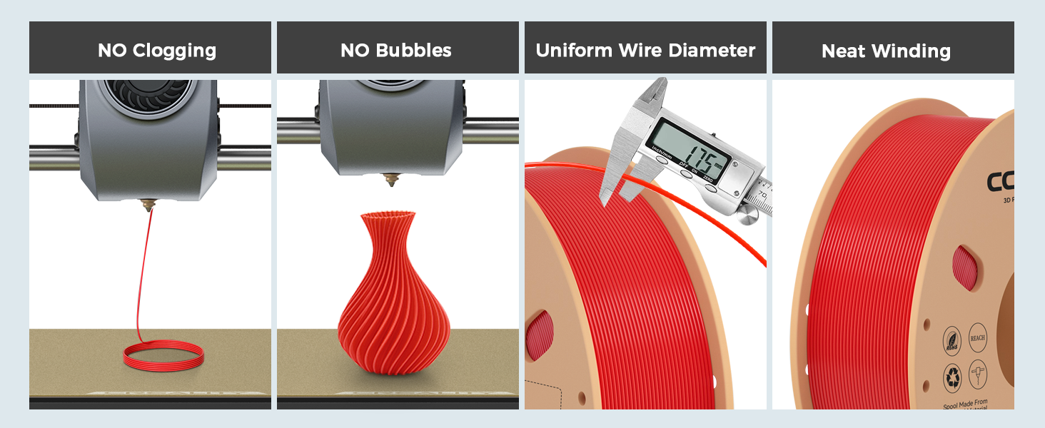 【الدقة والاتساق】: الشعيرات مصنوعة من مادة خام PLA الممتازة بدقة الأبعاد + / - 0.02 مم؛ بكرة 1 كجم (1.1 رطل). سيكون لديك تجربة جيدة جدًا أثناء الطباعة باستخدام هذه الشعيرات.