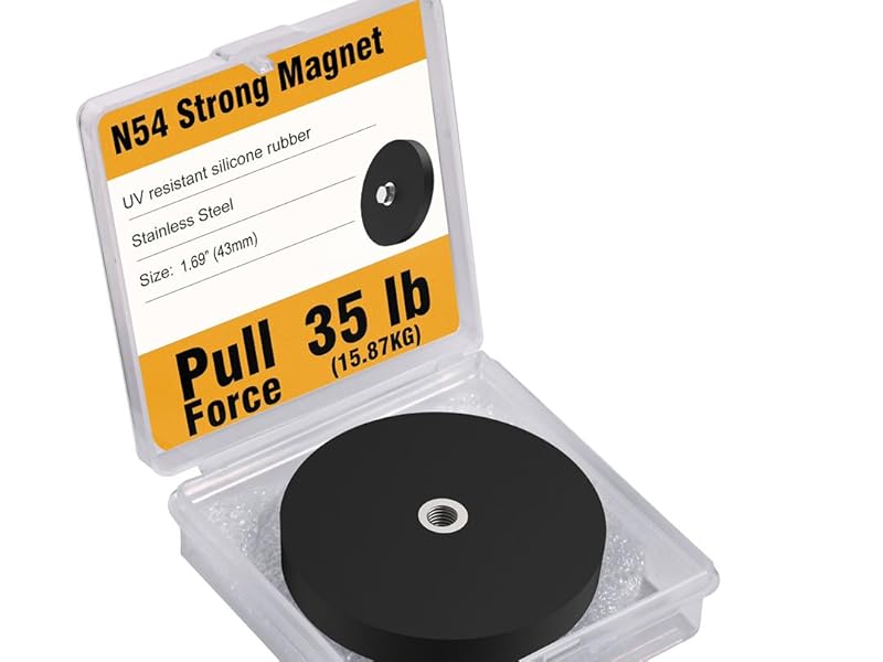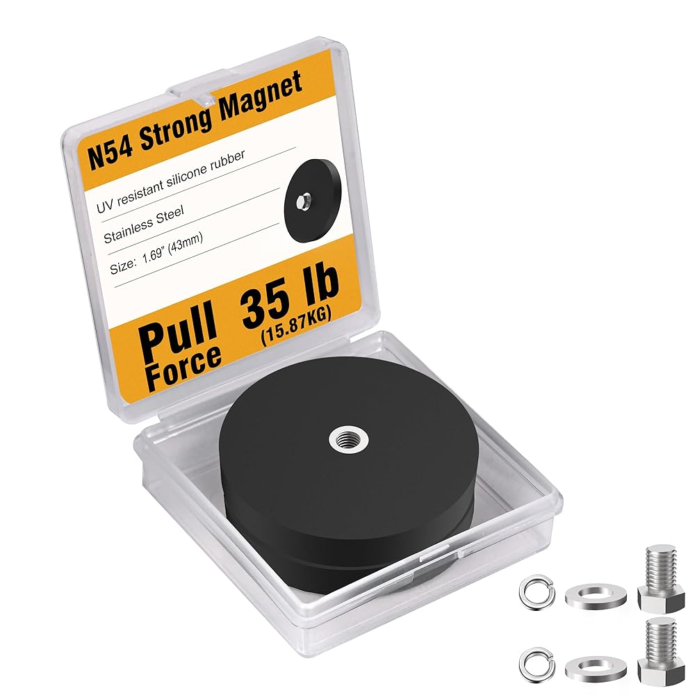 8 قطع مغناطيس مطلي بالمطاط، قوة 35 رطلاً، قوة N54، خيط M5، عالي التحمل (8 وحدات، 1.69 بوصة/43 مم). مغناطيسات مضادة للخدش، مقاومة للماء للتركيب في المنزل، ومقصورة الرحلات البحرية والاستخدام الخارجي.