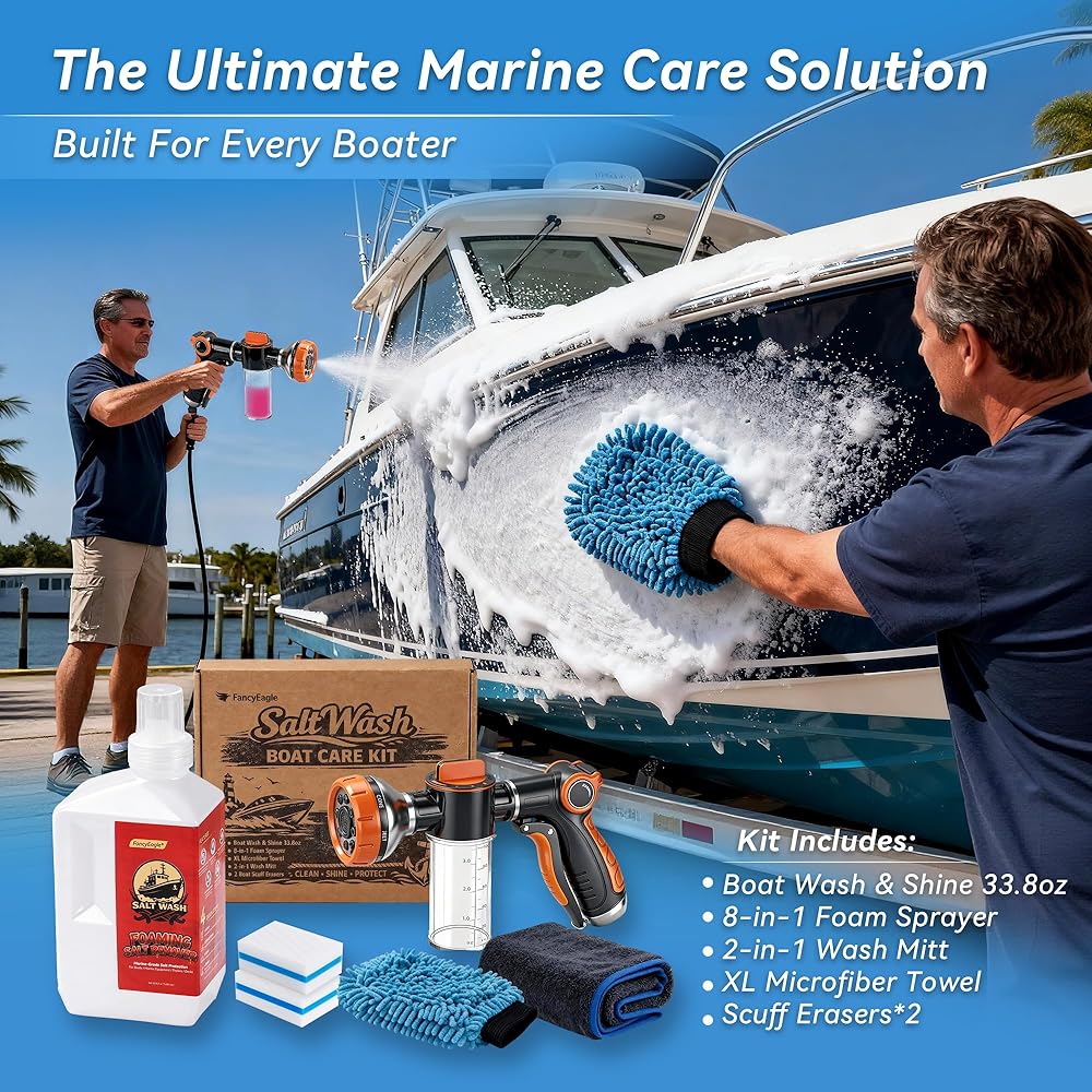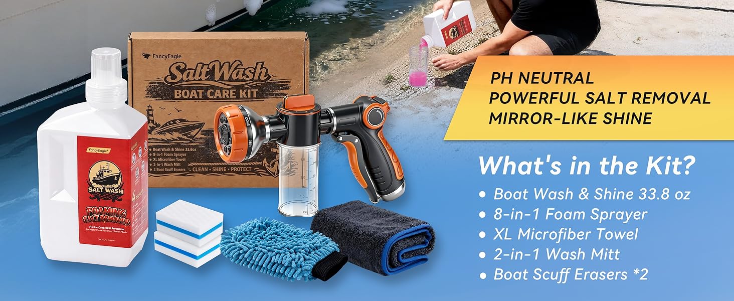 𝐅𝐎𝐀𝐌 𝐒𝐏𝐑𝐀𝐘𝐄𝐑] - يشتمل على غسيل وتلميع القارب بوزن 33.8 أونصة، وبخاخ رغوي بنهاية خرطوم 8 في 1، ومنشفة من الألياف الدقيقة بحجم XL، وقفاز غسيل 2 في 1 وممحاة جرجر. كل ما تحتاجه في مجموعة تنظيف القوارب الواحدة للتنظيف السريع للرصيف وتفاصيل عطلة نهاية الأسبوع والصيانة الدورية