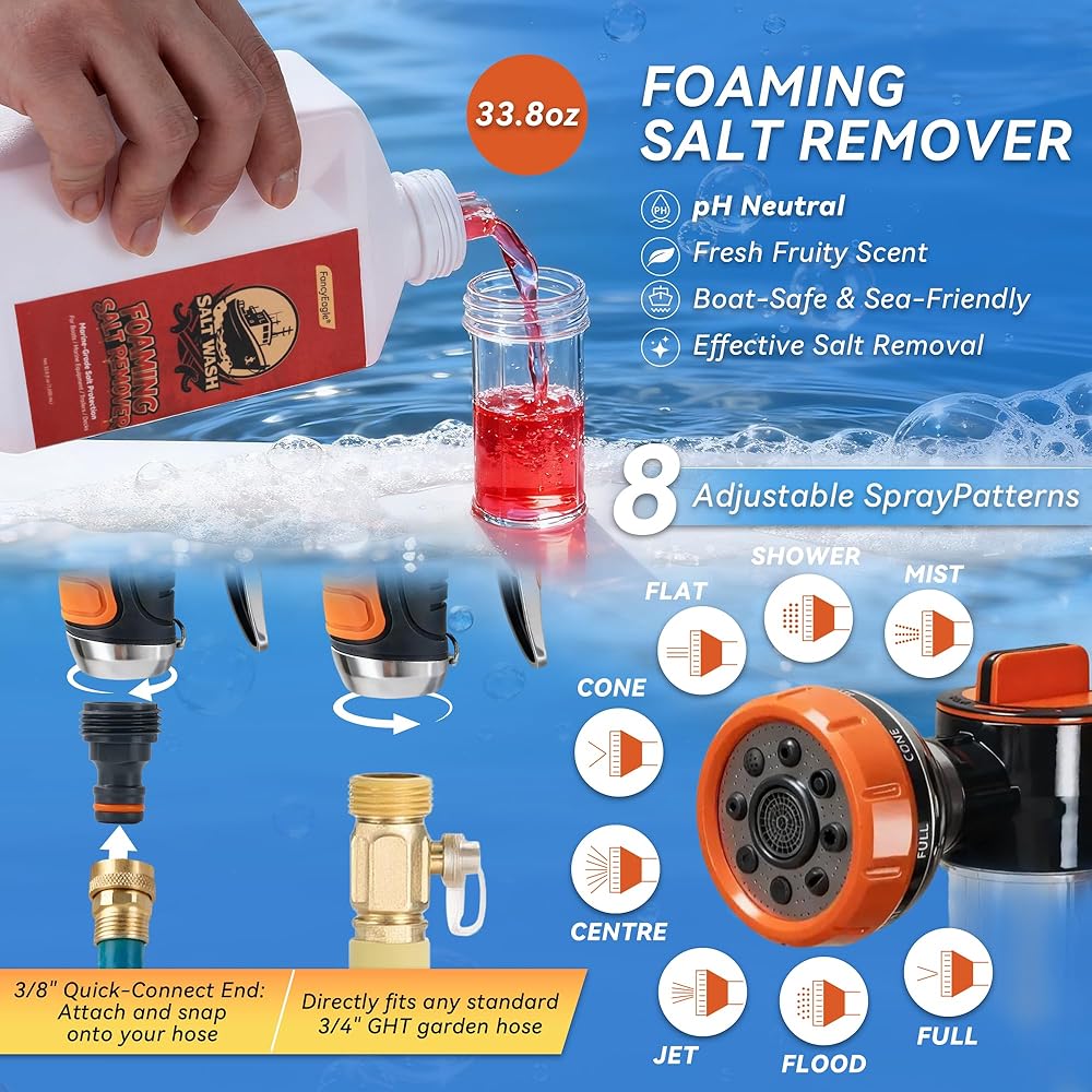 [𝐇𝐎𝐒𝐄-𝐑𝐄𝐀𝐃𝐘 𝟖-𝐈𝐍-𝟏 𝐅𝐎𝐀𝐌 𝐒𝐏𝐑𝐀𝐘𝐄𝐑 𝐅𝐎𝐑 𝐅𝐀𝐒𝐓 𝐂𝐎𝐕𝐄𝐑𝐀𝐆𝐄] - يتم توصيل بخاخ الرغوة المتضمن بخرطوم حديقة قياسي لتطبيق سريع ومتساوي. إعدادات الرش المتعددة تجعل من السهل رغوة وشطف وغسل المناطق الكبيرة بكفاءة، مما يجعل مجموعة غسيل الملح هذه خيارًا عمليًا للقوارب والمحركات البحرية واستخدام محرك خارجي وتنظيف السيارة.