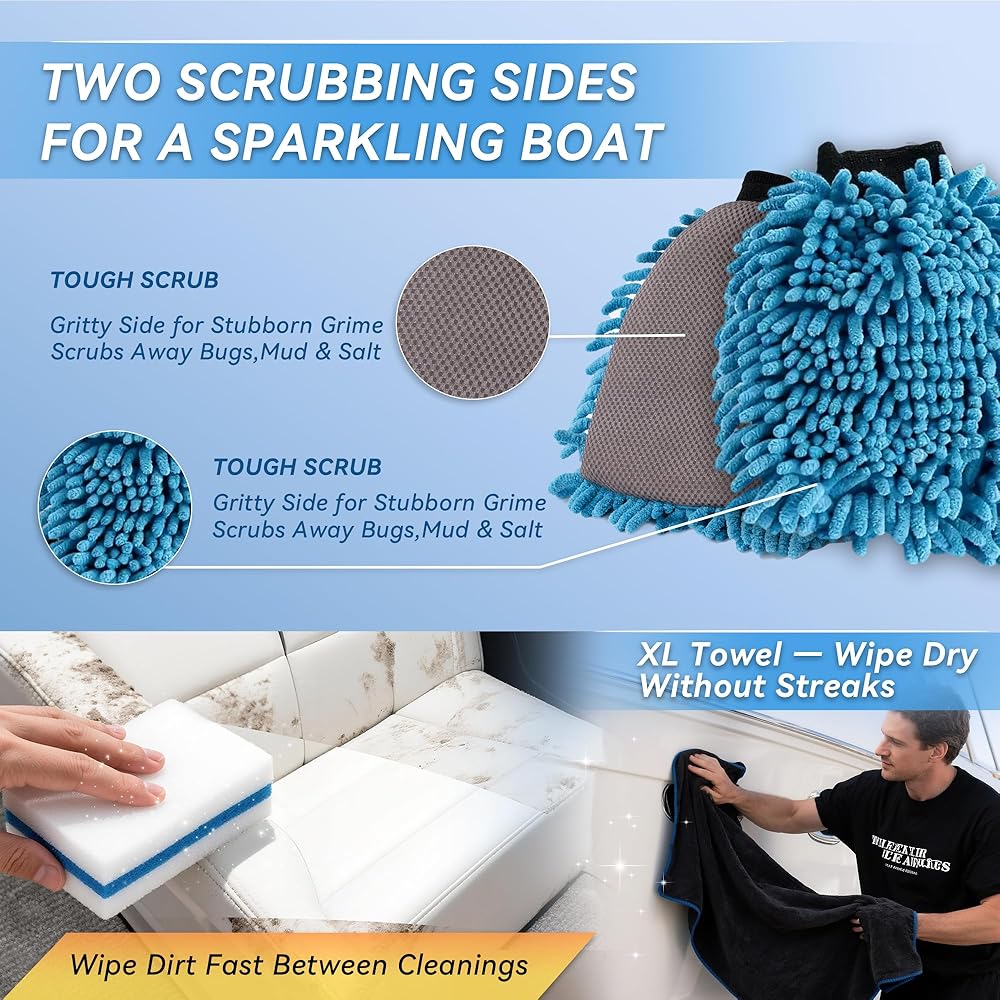 | 𝐕𝐈𝐍𝐘𝐋] – مُصمم للاستخدام على الأسطح الخارجية للقوارب والأسطح البحرية الشائعة بما في ذلك الألياف الزجاجية والجيلكوت والهياكل والأسطح ومقاعد الفينيل. يساعد قفاز الغسيل ومنشفة XL على توفير لمسة نهائية أكثر نظافة، بينما تساعد ممحاة الاحتكاك على معالجة العلامات على الأسطح الصلبة غير المطلية؛ اختبار في منطقة صغيرة أولا