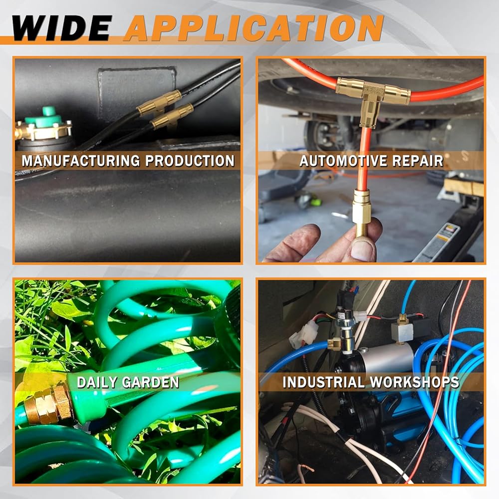 تطبيق نموذجي - يمكن استخدام تركيبات خط فرامل الهواء المنقط مع أنظمة التعليق الهوائي، والأنابيب النحاسية في أنظمة فرامل خطوط الهواء، مثالية لتسريب خط الهواء لإصلاح الشاحنات/RV، كما أنها مثالية لورش العمل الصناعية، وإصلاح الحديقة اليومية أو جزازة العشب، ووصلة خرطوم آلة السحب وما إلى ذلك.