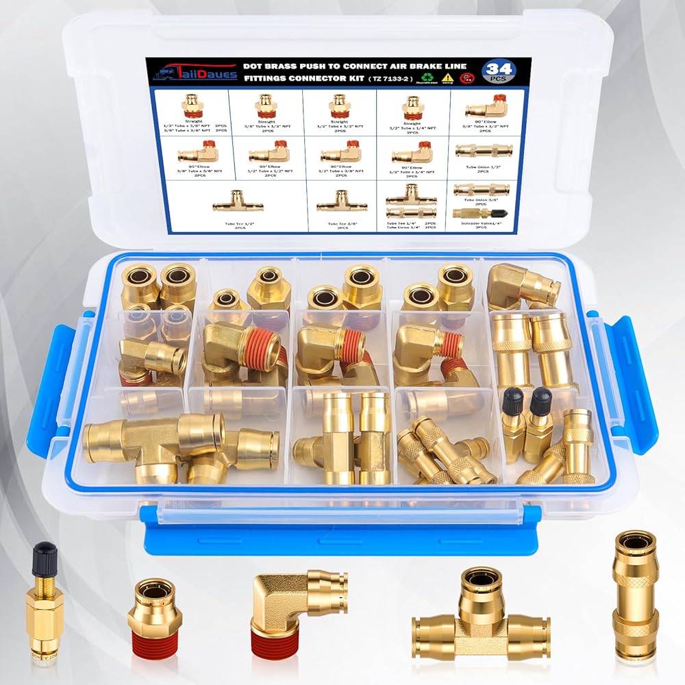 34 قطعة من تركيبات خط فرامل الهواء النحاسية المتنوعة 1/4 بوصة 3/8 بوصة 1/2 بوصة تركيبات توصيل سريعة لخط الهواء ادفع لتوصيل مجموعة تجهيزات الهواء مع خيط NPT لشبه الشاحنات أو نظام الهواء الصناعي