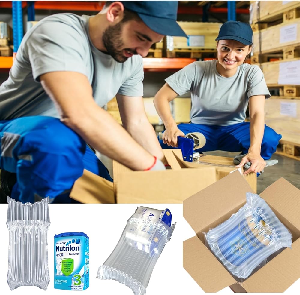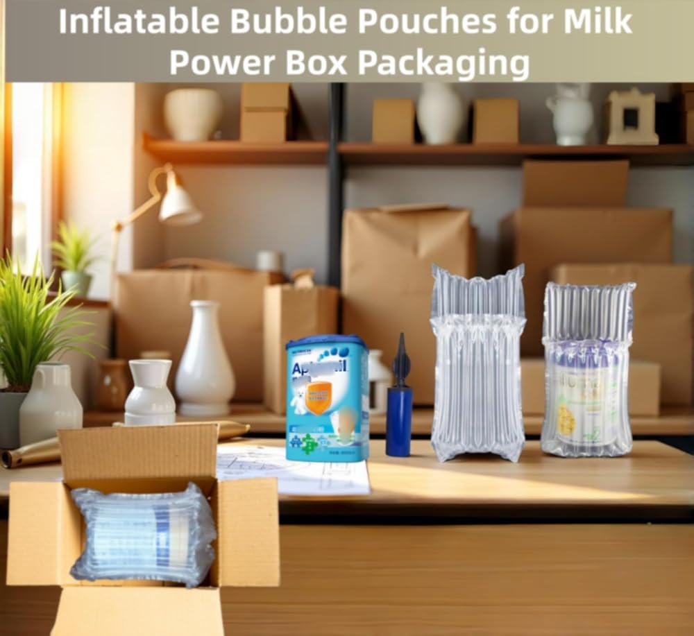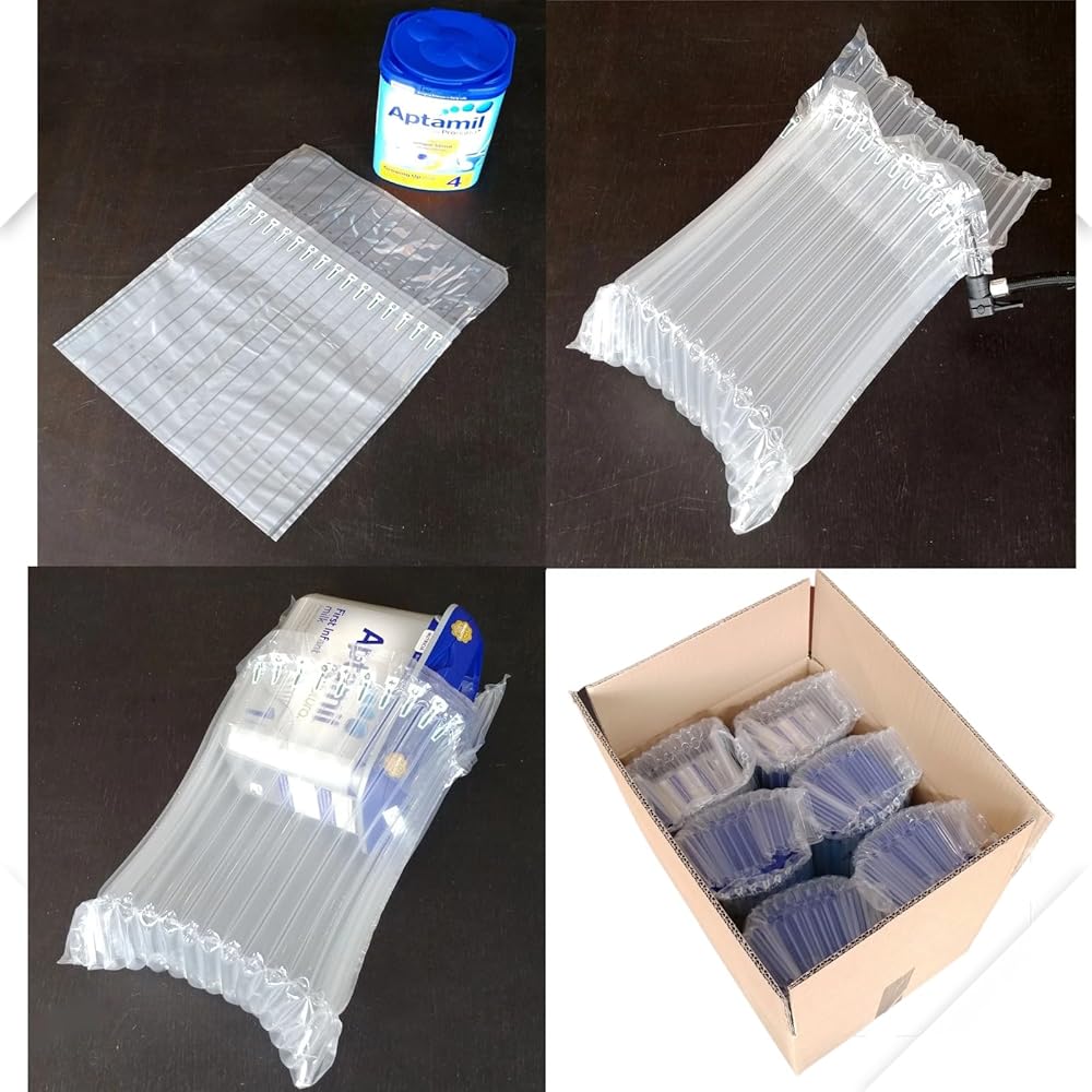 • [ Standard Application ] suit for Milk Power Can size within 20cm *13cm,the inflatable air column bag is made of durable PE/PA nylon for toughness and load resistance. size: 330x410mm ( Before-inflation), Leak-proof, easy to inflate with hand pump (included), every column automatic air lock after inflated, ensuring long-lasting protection. Ideal for shipping baby formula cans and other delicate products.