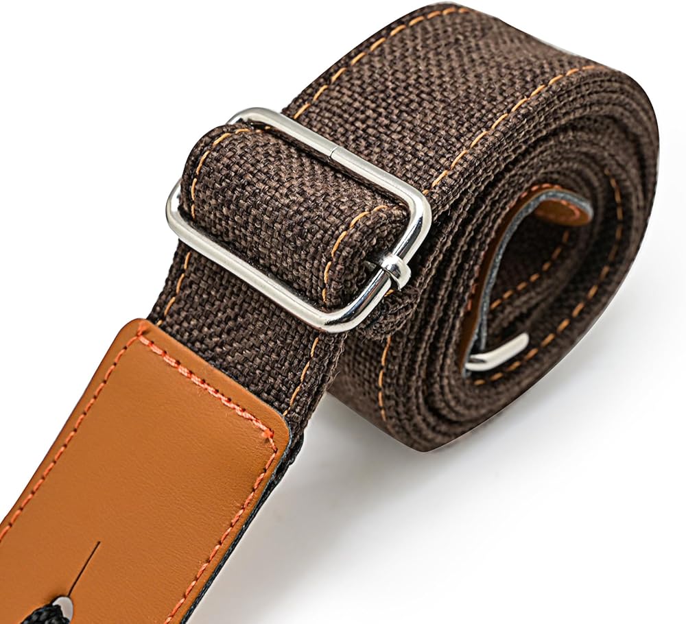 حزام القيثارة على الطراز الريفي من الكتان القطني الناعم والجلد الطبيعي حزام كتف القيثارة