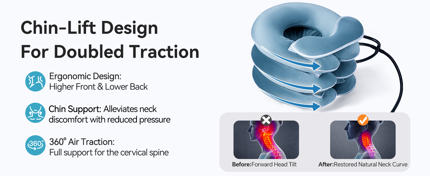 الجر المخصص لأقصى قدر من الجر: يستخدم جهاز الجر هذا تصميمًا للجر ثلاثي المناطق، يستهدف العمود الفقري العنقي العلوي والمتوسط والسفلي من أجل احتكاك فعال مع كل تطبيق.