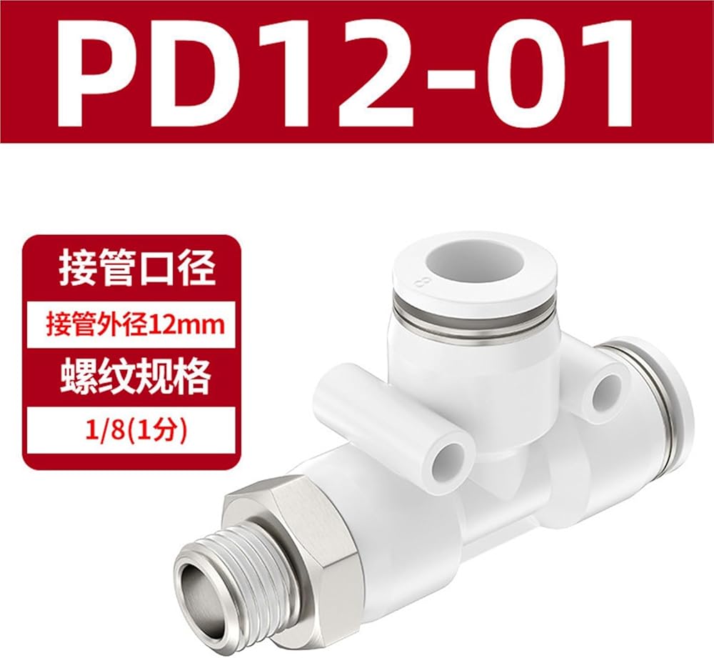 القصبة الهوائية موصل سريع على شكل حرف T الجانب المحملة PD4-01/6-01/8-02/12-04 الملحقات 1 قطعة (白色PD12-01)
