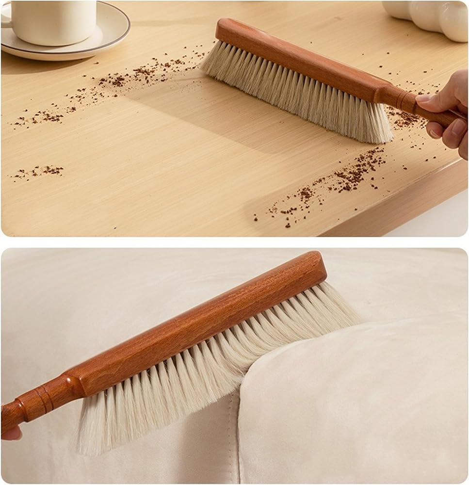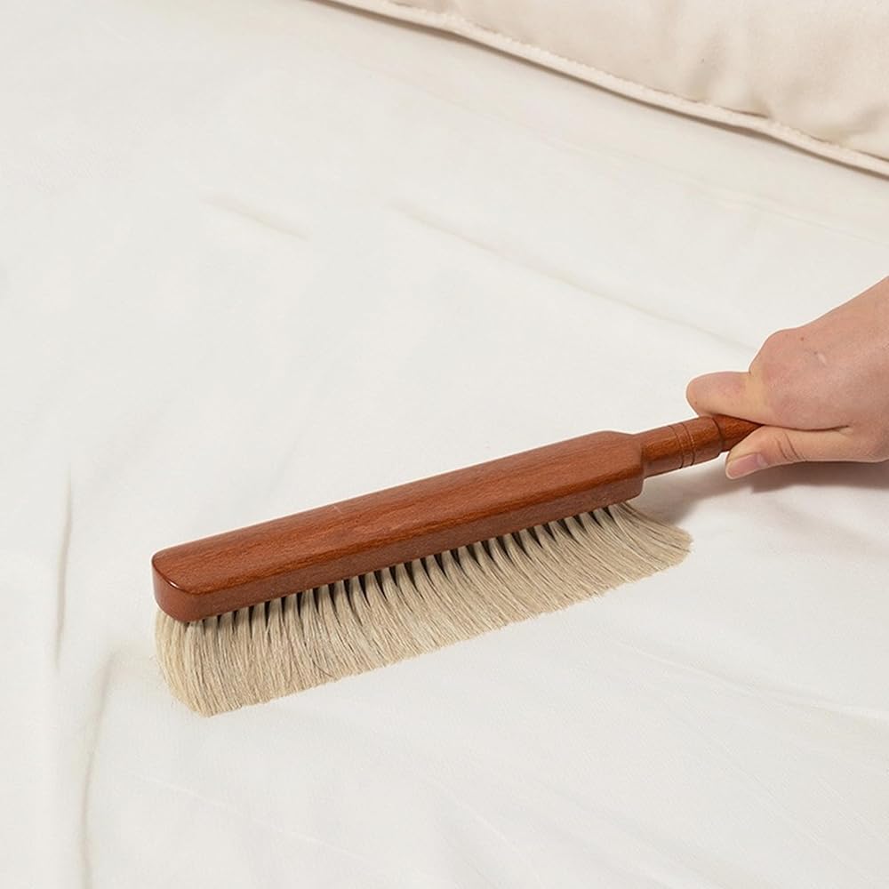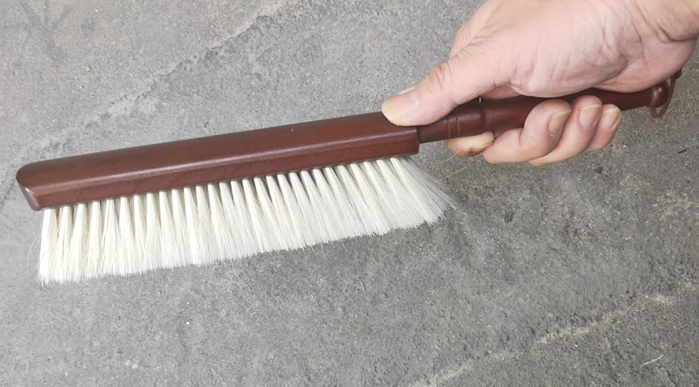 قطعة واحدة من فرشاة يد كبيرة من شعر الحصان بشعيرات ناعمة، فرش تنظيف للاستخدام المنزلي، فرشاة مكنسة للغبار، فرش مقعد من شعر الحصان بطول 13.3 بوصة مع مقبض من خشب الزان