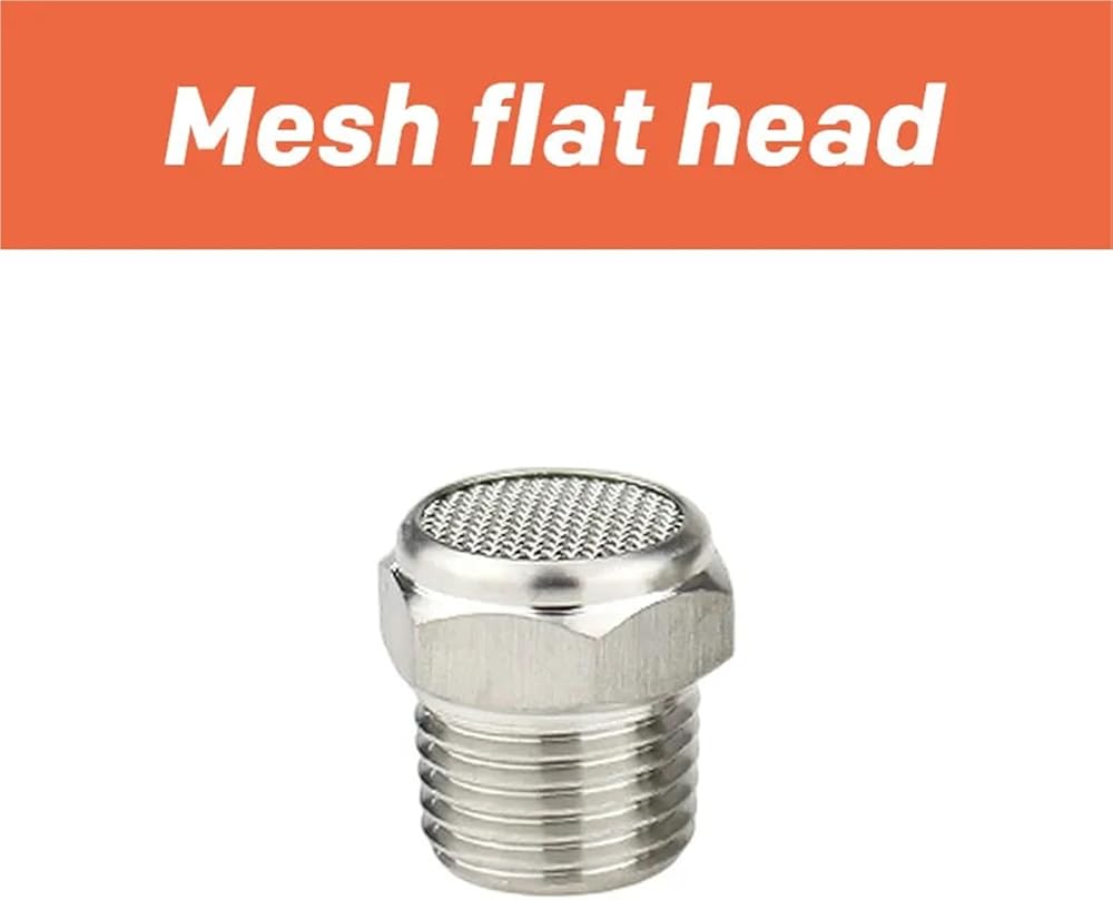 كاتم صوت من الفولاذ المقاوم للصدأ 304 بنهاية مسطحة ومدبب 1/8 1/4 3/8 1/2 بوصة 1 قطعة (رأس مسطح شبكي)