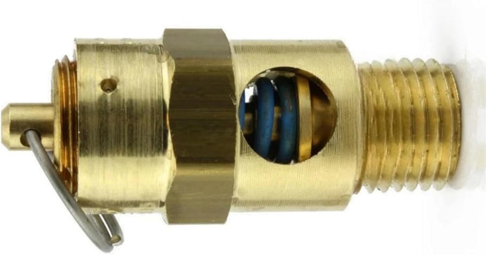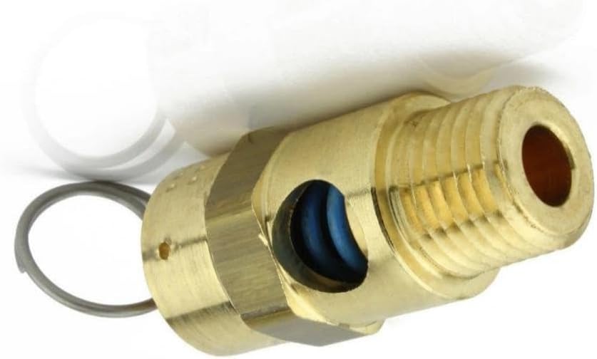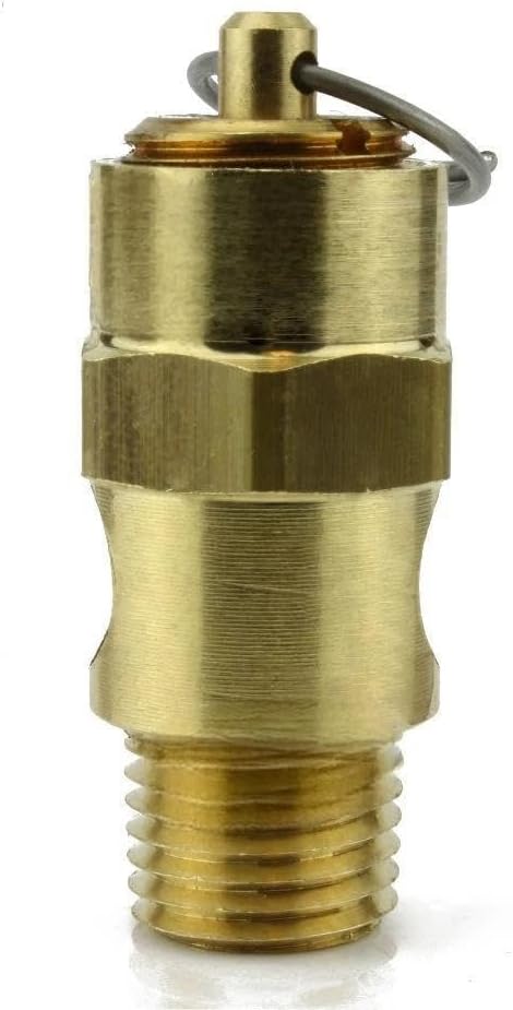 25035 صمام تخفيف ضغط أمان ضاغط الهواء - لاستبدال أجزاء ضاغط الهواء Conrader - صمام إيقاف الخزان - 1/4 بوصة NPT 35 PSI 39 SCFM طول الصمام: 1-3/4 بوصة نحاس صلب