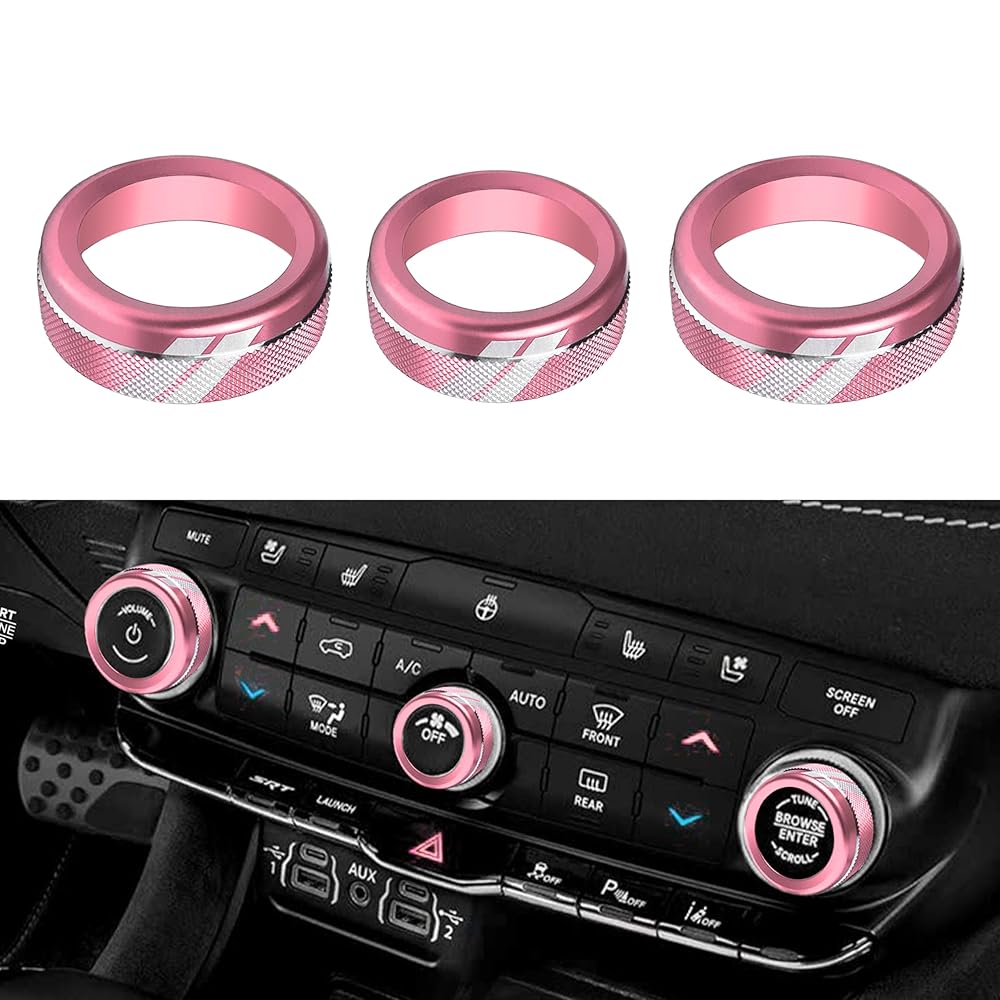 YOSRTER 6PCS Aluminum Air Conditioning Control Knob Cover for Dodge Durango Accessories 2021 2022 2023 2024 2025 2026 AC Climate Switch Volume Tune Adjust(Pink)