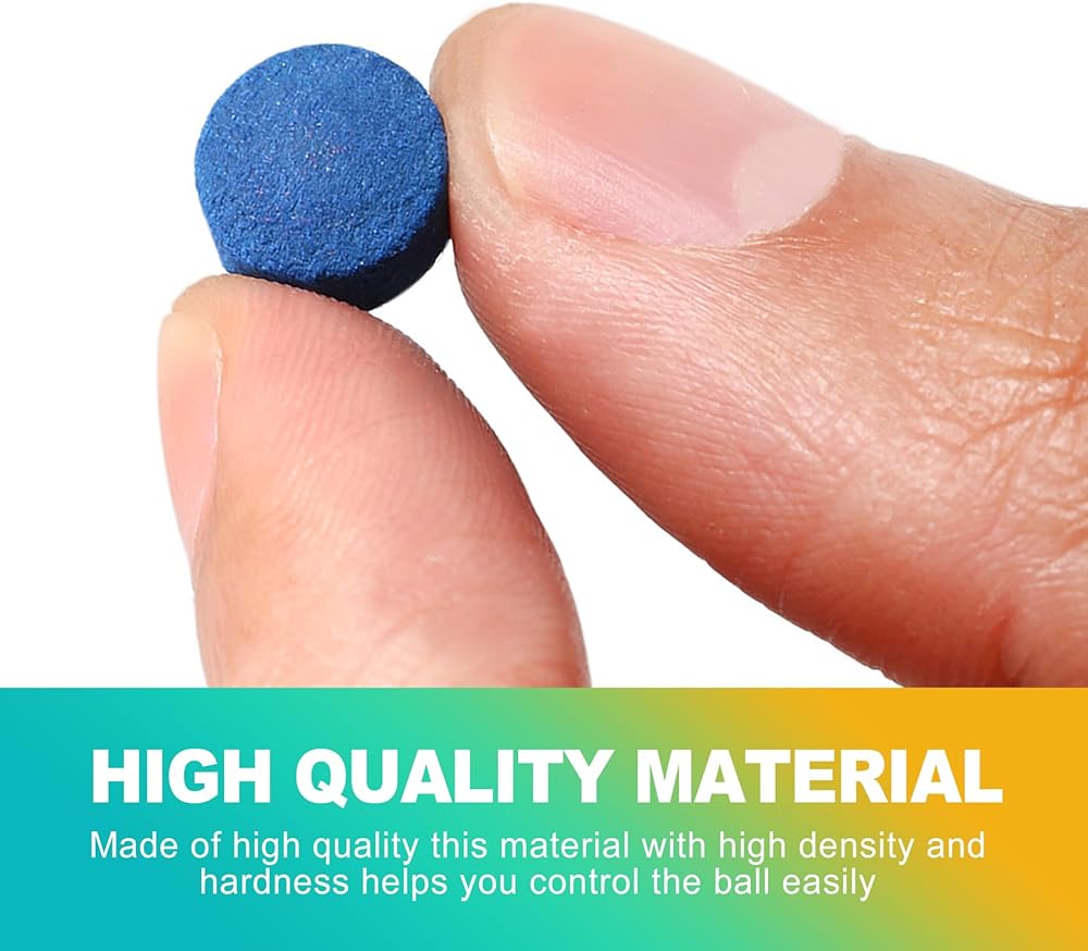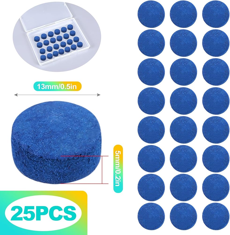 Essential Features & Quality Assurance:Complete 25-Piece Set: Includes 25 premium blue pool cue tips, each measuring a standard 13mm in diameter and 5mm in thickness. This makes it suitable for almost any cue stick.