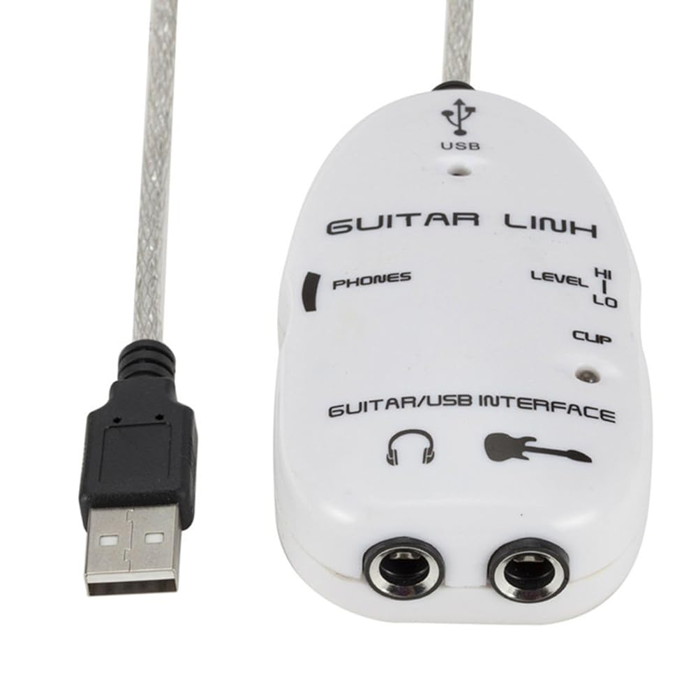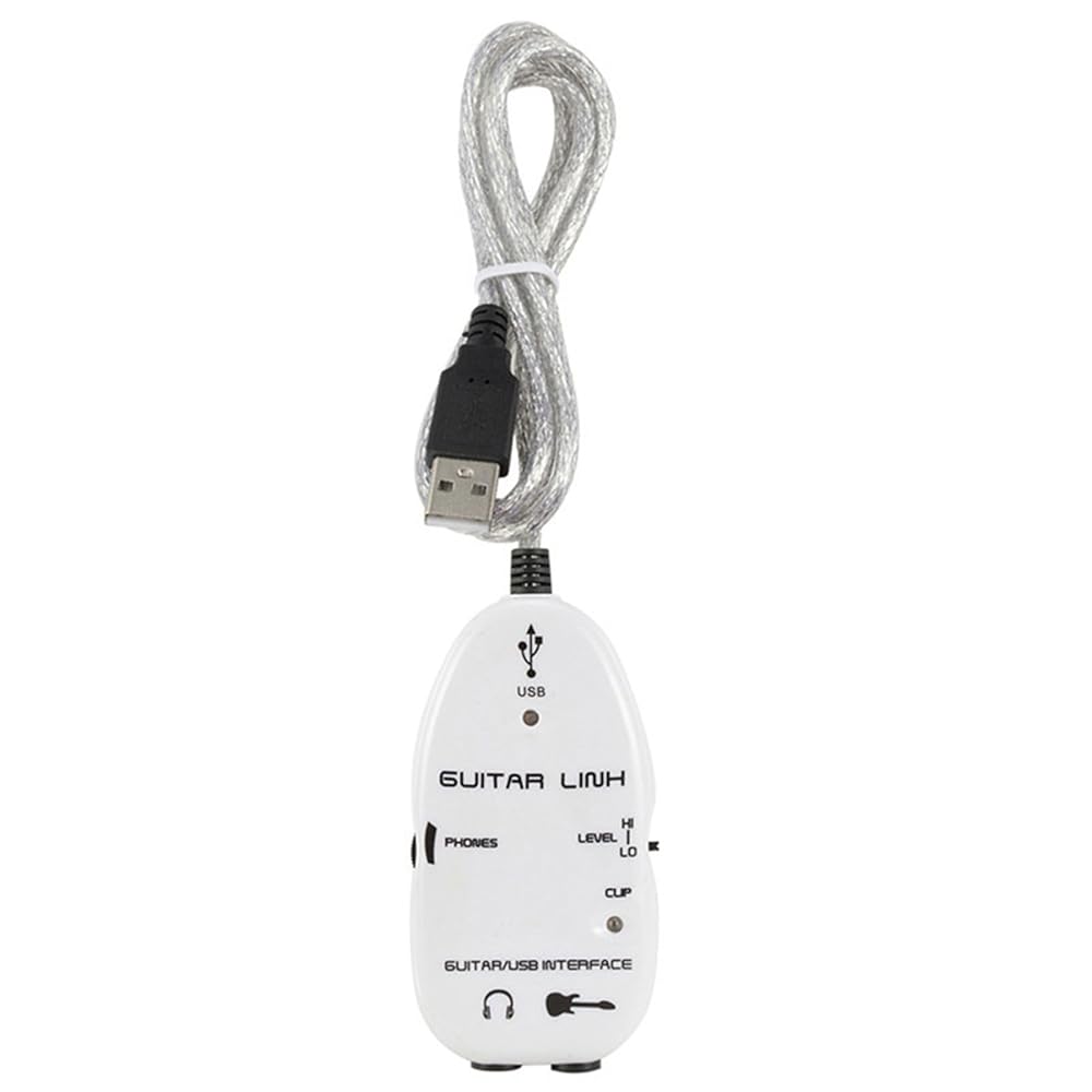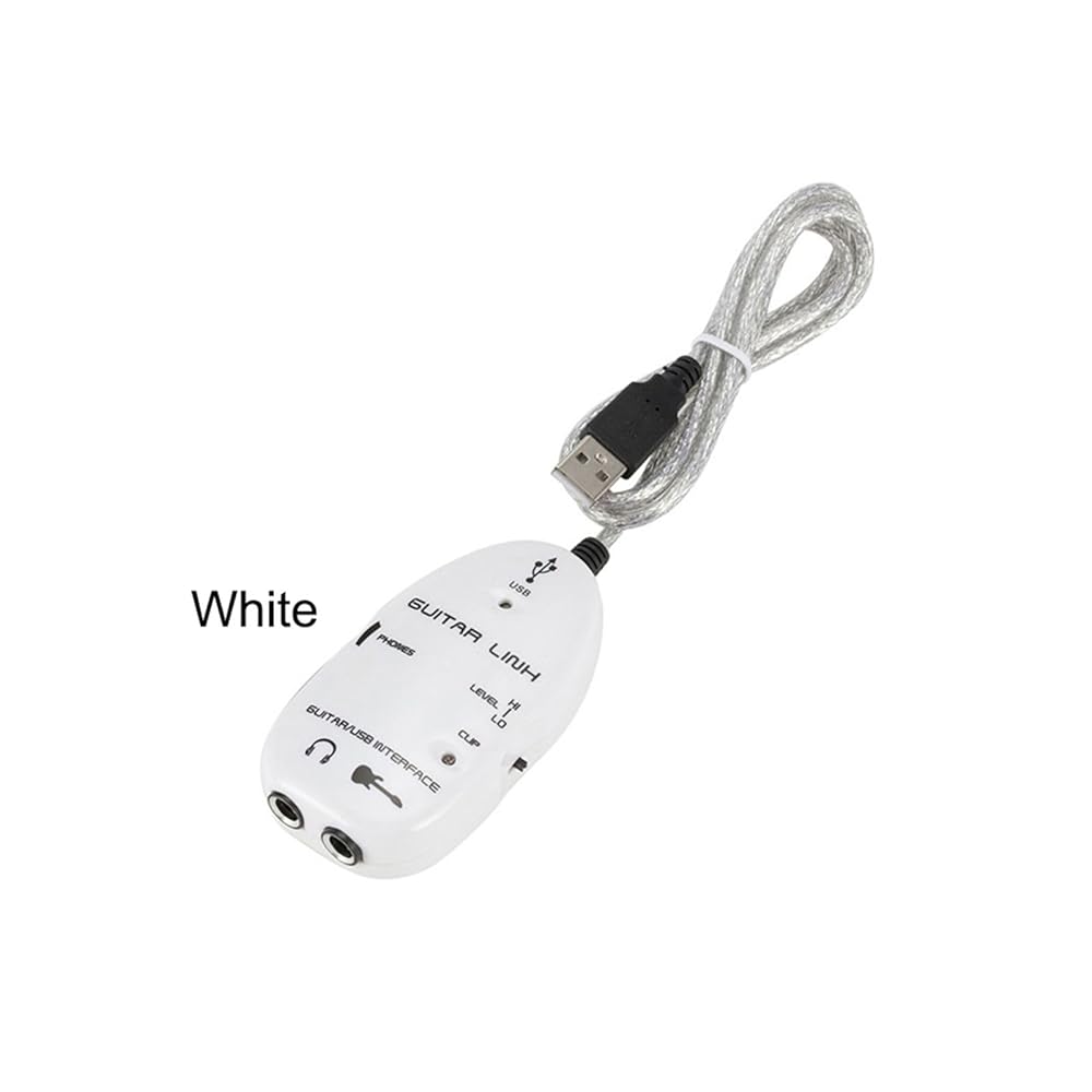 جهاز تسجيل محول واجهة الصوت USB من Walfront Guitar للكمبيوتر الشخصي مع مخرج سماعة رأس ستيريو يعمل بمنفذ USB للمراقبة مع مكبرات صوت الشاشة النشطة (أبيض)