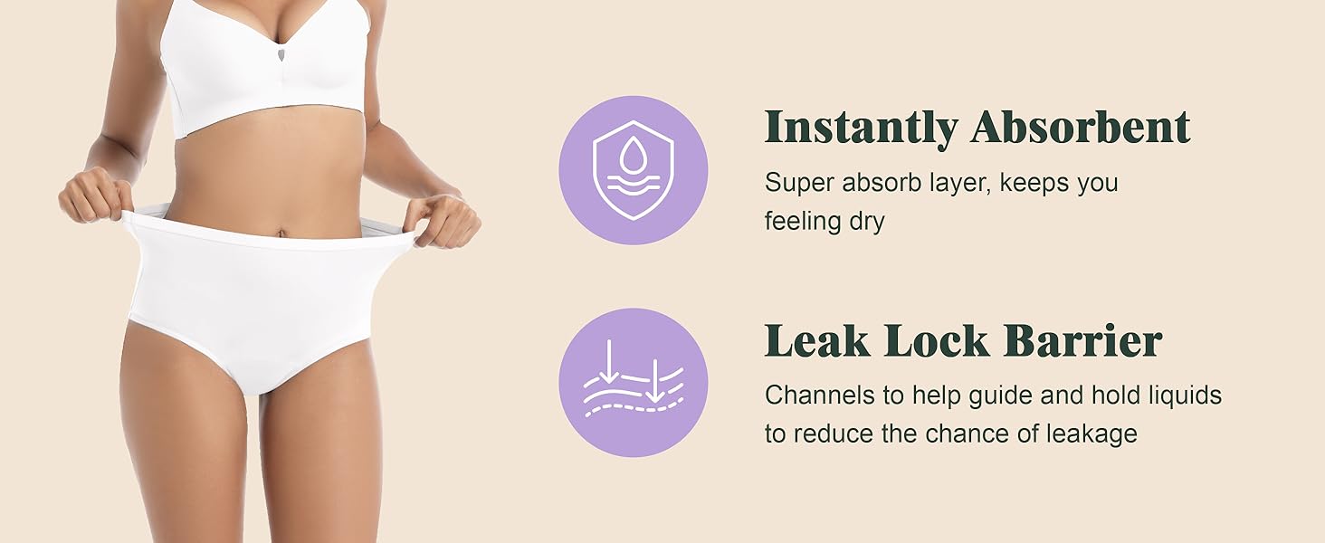 56 مل امتصاص فائق: ملابس داخلية مقاومة للتسرب من IRISMORII مع طبقة واقية 4 في 1، طبقة احتجاز الرطوبة يمكن أن تحبس السائل والبول على الفور، ولن تشعر بالبلل أو الحجم الكبير، مما يبقيك جافًا ومنتعشًا أكثر. يوصى به في حالة تسرب المثانة الخفيف إلى المتوسط