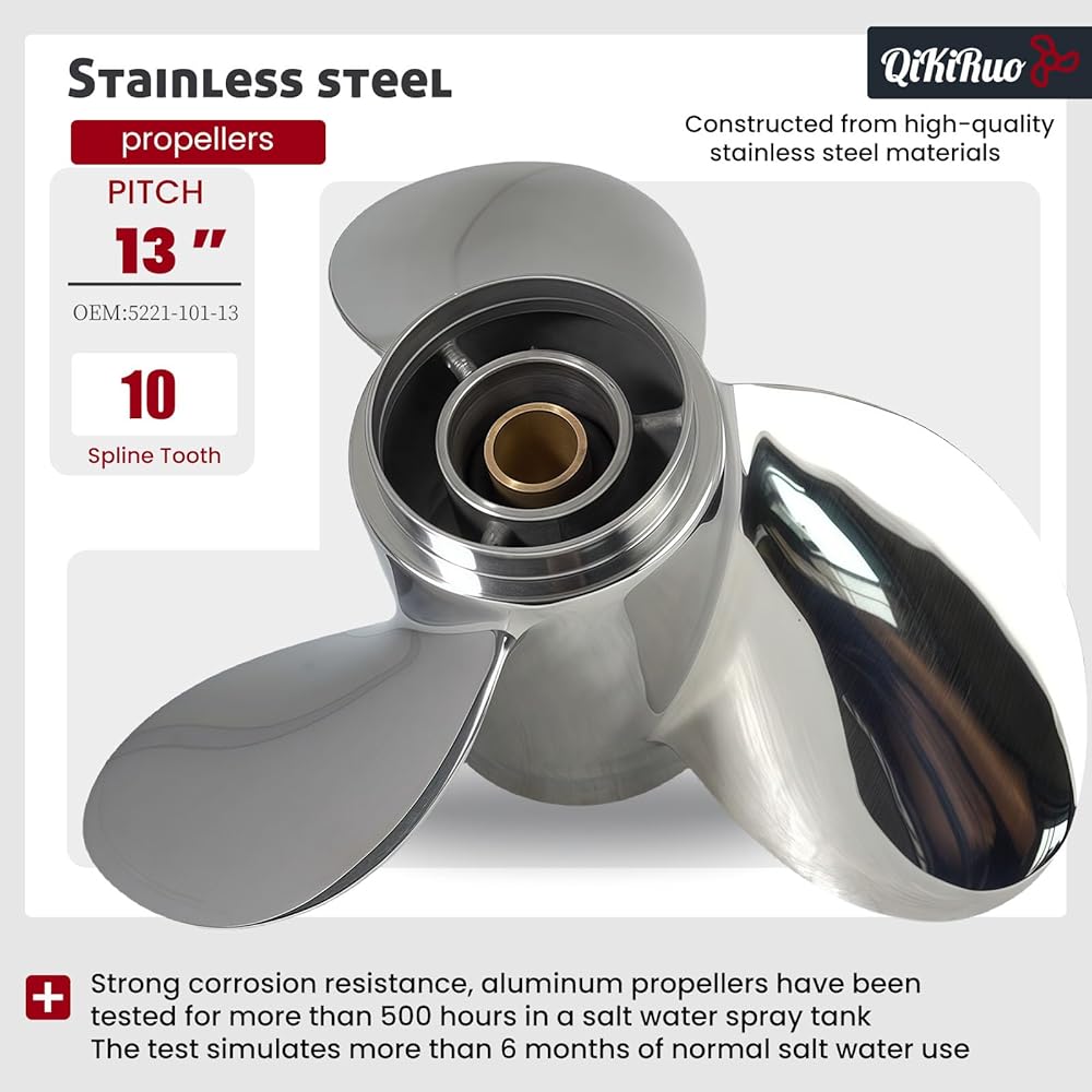 الفولاذ المقاوم للصدأ: تناسب مراوح Tohatsu & Nissan 10 1/4X13 المصنوعة من الفولاذ المقاوم للصدأ - تتميز بأعلى نسبة في الصناعة من الكروم والنيكل والموليبدينوم. مادتنا مقاومة للصدأ من المياه المالحة وتزيد من ثبات شفرات المروحة.