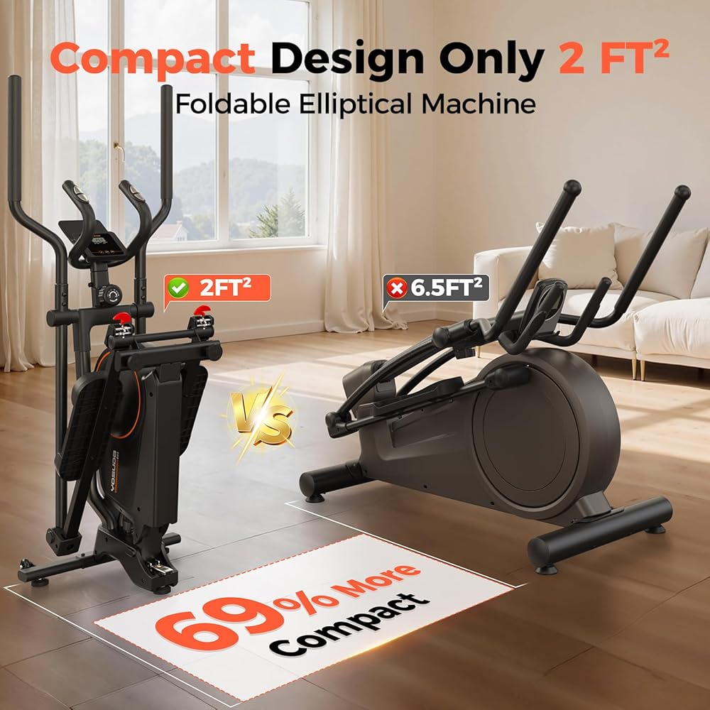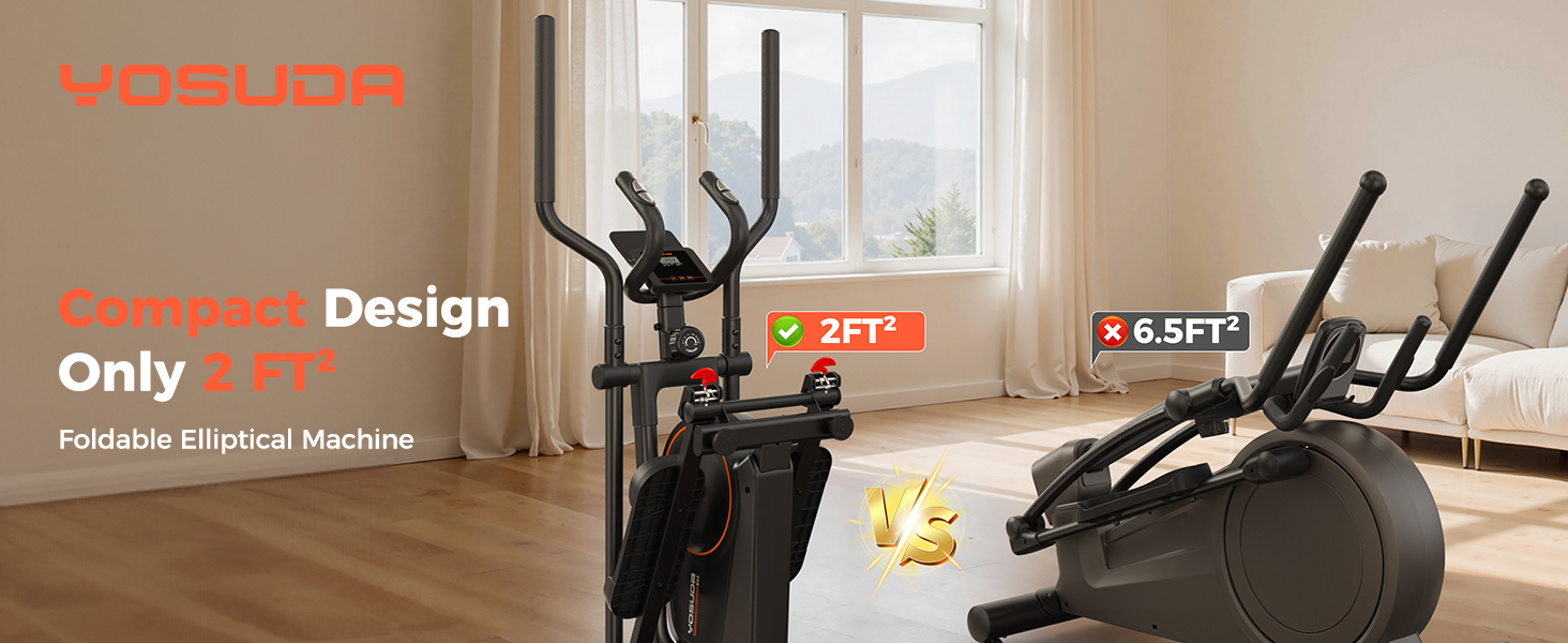 【Compact Elliptical Machine】YOSUDA elliptical folds away easily in just three steps, eliminating complicated storage; It occupies only 2ft² when folded, fitting easily into any corner of your home and blending seamlessly into your space—giving you more room for living