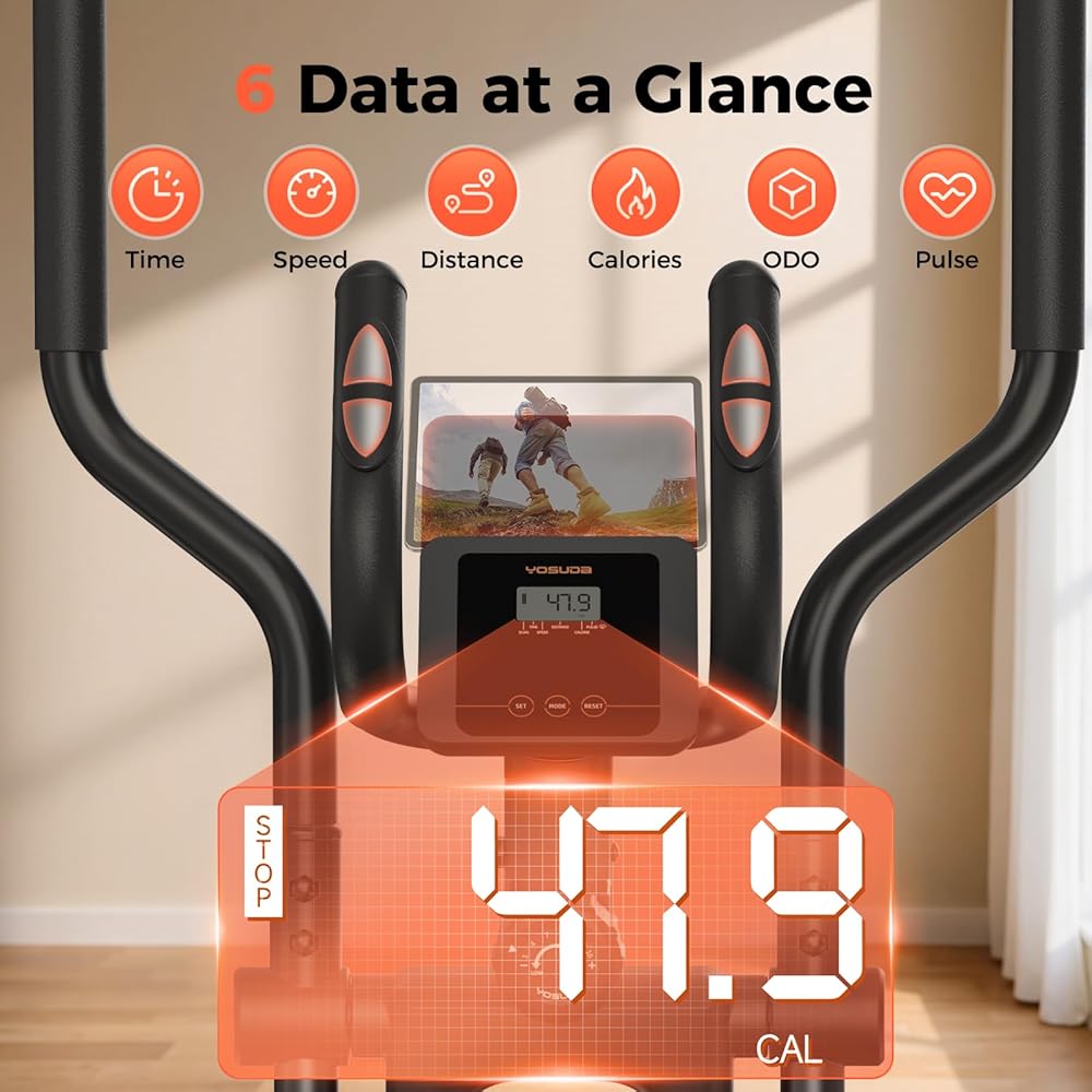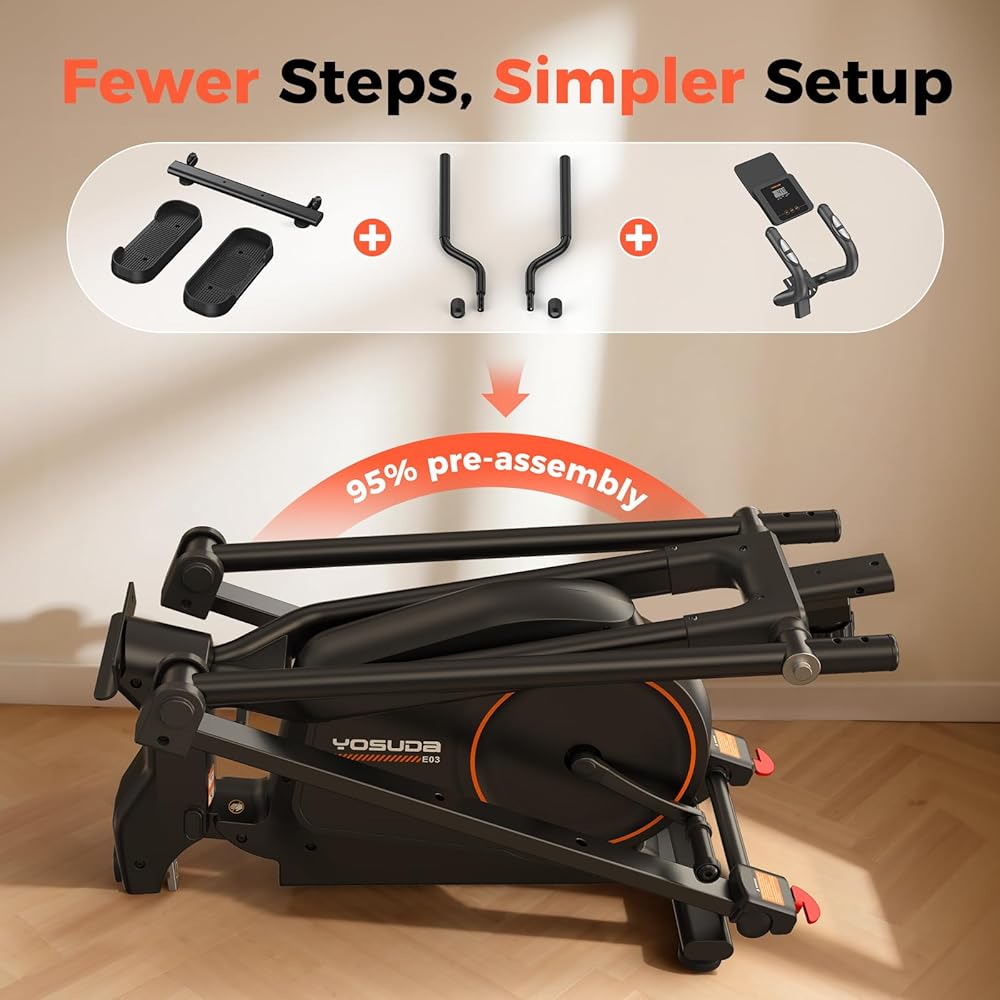 【Fewer Steps & Simpler Setup】YOSUDA foldable elliptical arrives 95% pre-assembled, enabling one person setup in 15 minutes; Clear instructions and video guides make installation straightforward, ensuring all your time and energy go toward achieving fitness goals