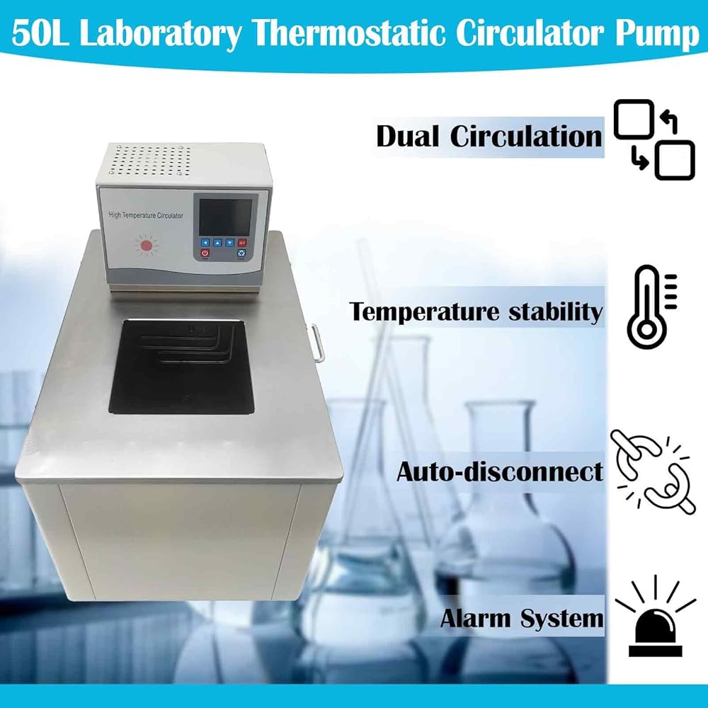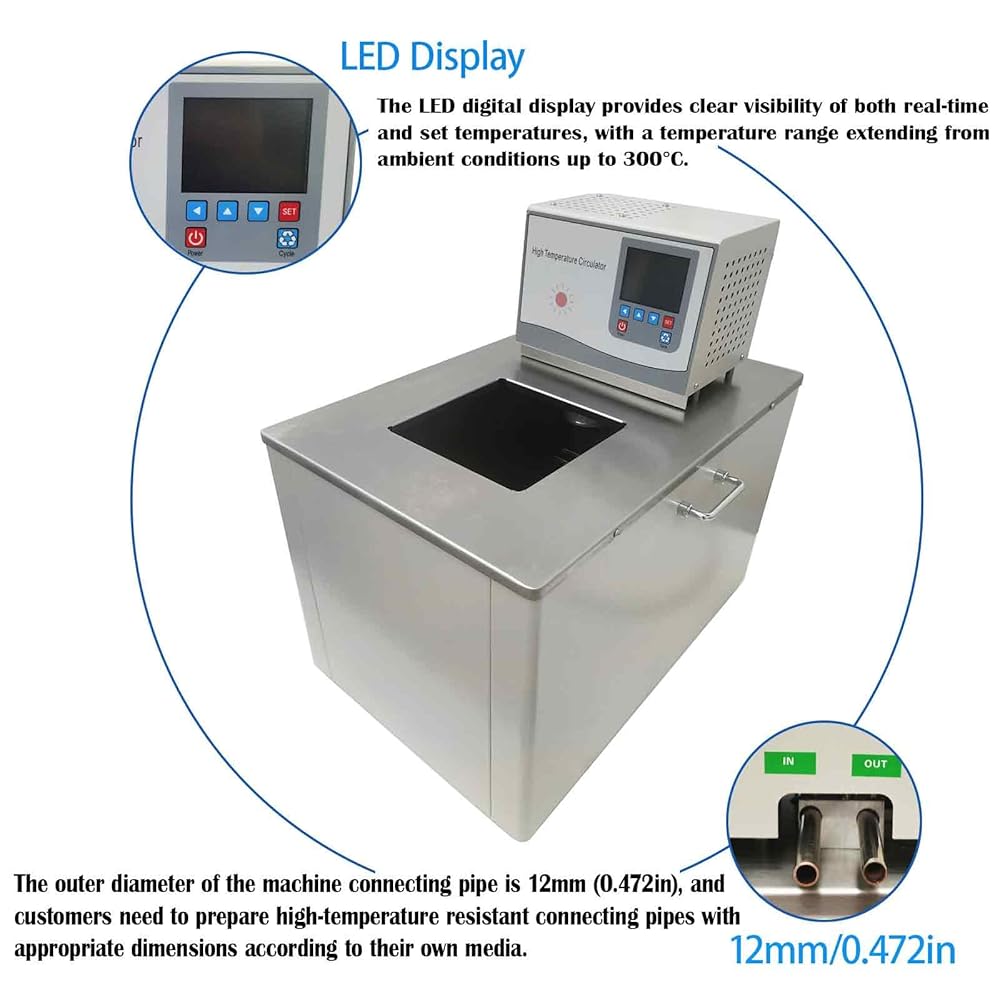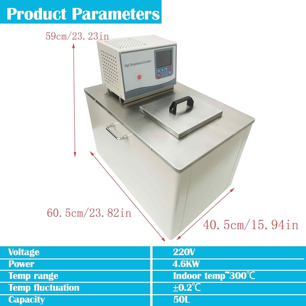 مضخة دائرية ثرموستاتي للمختبر 220 فولت 50 لتر، حمام زيت/ماء رقمي بدرجة حرارة عالية 4600 وات مع درجة حرارة غرفة قابلة للتعديل إلى 300 درجة مئوية للمفاعل والمبخر