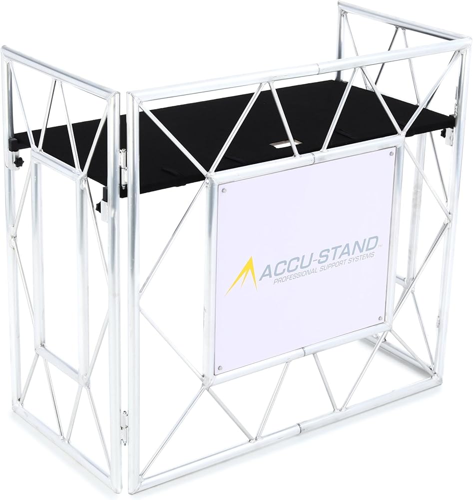 Step up your appearance with the Accu-Stand Pro Event TBL 2, a revolutionary alternative to traditional folding banquet tables. This sleek, modern masterpiece is designed to elevate your event setup, ensuring seamless professionalism and unmatched convenience. Crafted for event enthusiasts, the Pro Event TBL 2 is ingeniously lightweight and foldable, making transport a breeze. It's a multifunctional wonder, serving as a greeting counter, sales table, DJ booth, or Front of House console stand – the possibilities are endless. With its sophisticated fold-flat design, setting up at events becomes effortless. The aluminum frame, sturdy cross-brace, and carpet-covered plywood top guarantee stability and durability. Measuring 50” x 24” x 45.5”, it offers ample space for your equipment and activities. What sets the Pro Event TBL 2 apart is its branding potential. The front panel is a blank canvas for your logo or event-specific designs, transforming it into a dynamic marketing tool. From concerts and conferences to pop-up bars and demonstrations, this table adapts seamlessly to diverse scenarios. Simplify your event life – ditch the road cases and generic tables. Weighing just 40 lbs., the Pro Event TBL 2 combines portability with reliability, all while collapsing to half its size for easy transport. With optional accessories like shelves, carrying bags, and scrims, you have a complete toolkit at your disposal. Upgrade your event setup with the Accu-Stand Pro Event TBL 2. Embrace innovation, style, and functionality in one compact package. Your event's success starts here! Several accessories are available to modify your Pro Event TBL 2 to make it one of a kind.