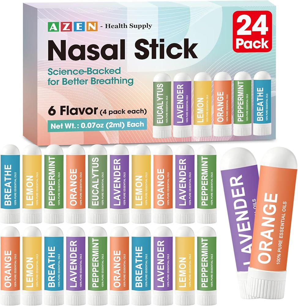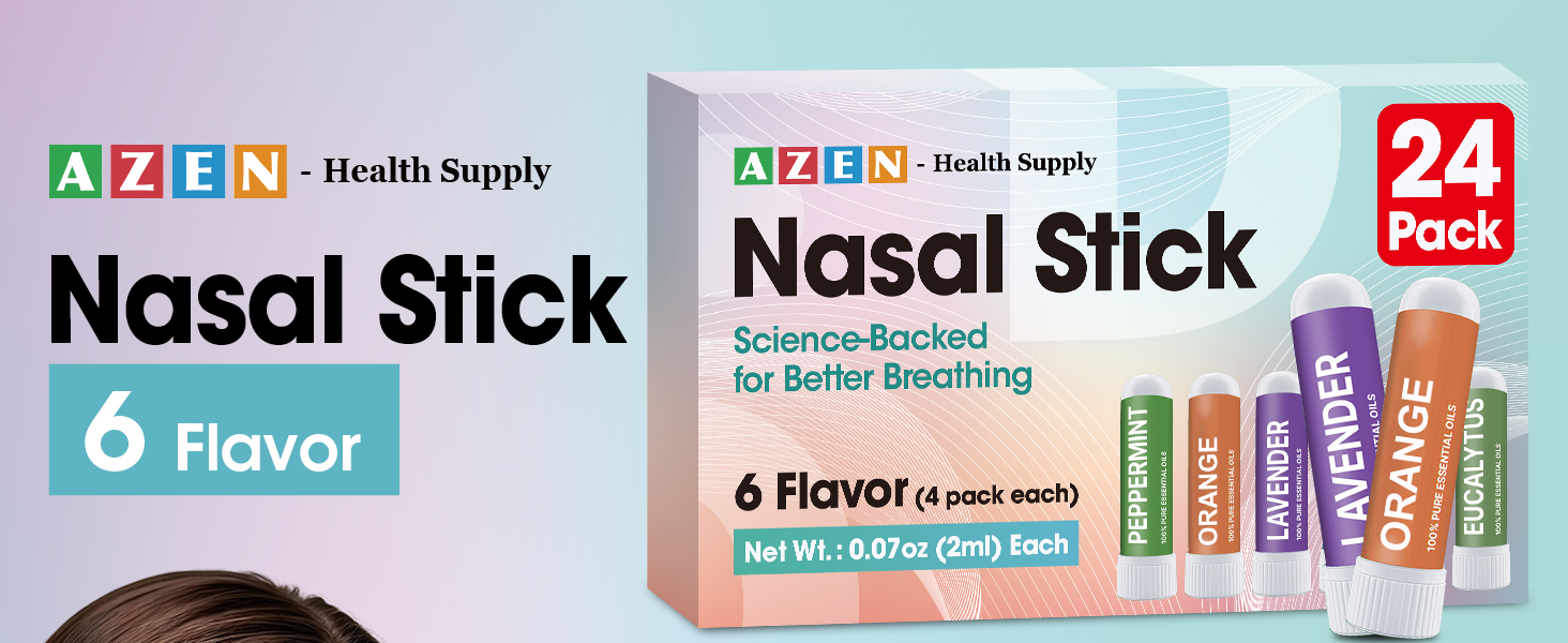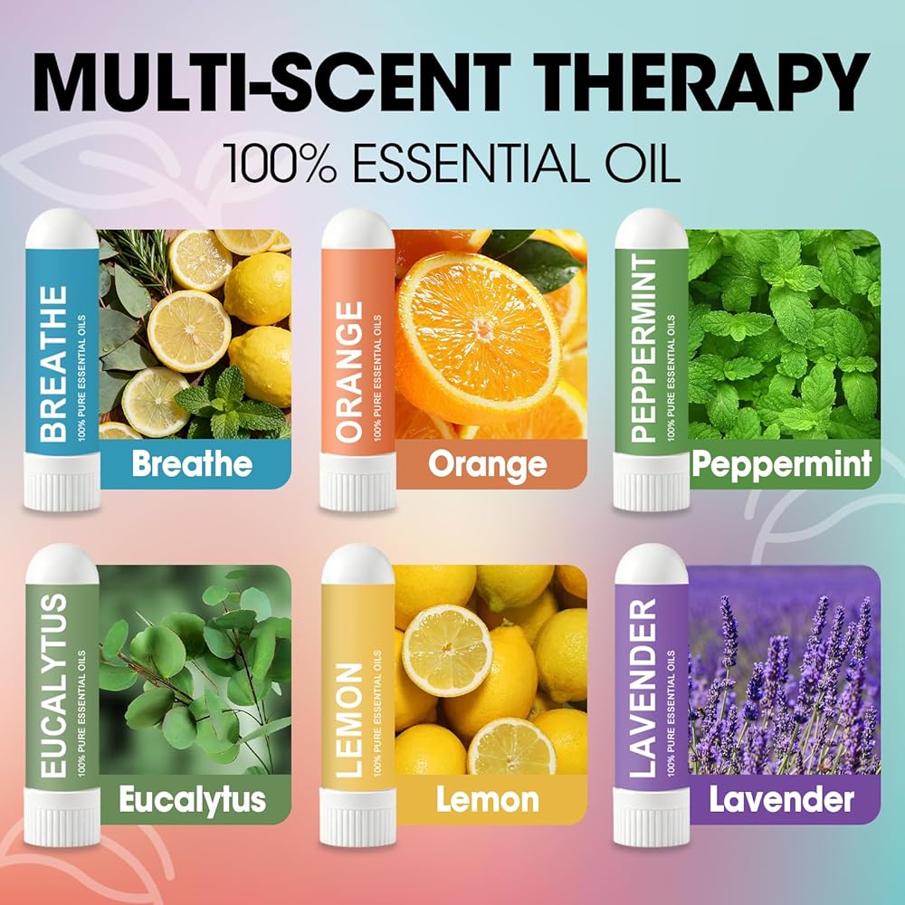 أعواد الأنف متعددة النكهات: 6 نكهات - النعناع واللافندر والليمون والأوكالبتوس والبرتقال ونكهات مختلطة، كل منها مصممة لدعم الطاقة والاسترخاء والتركيز وتخفيف التنفس العميق.