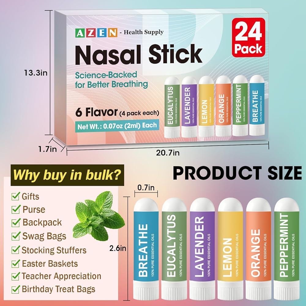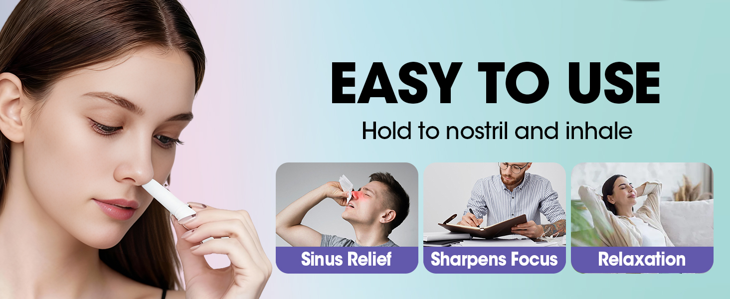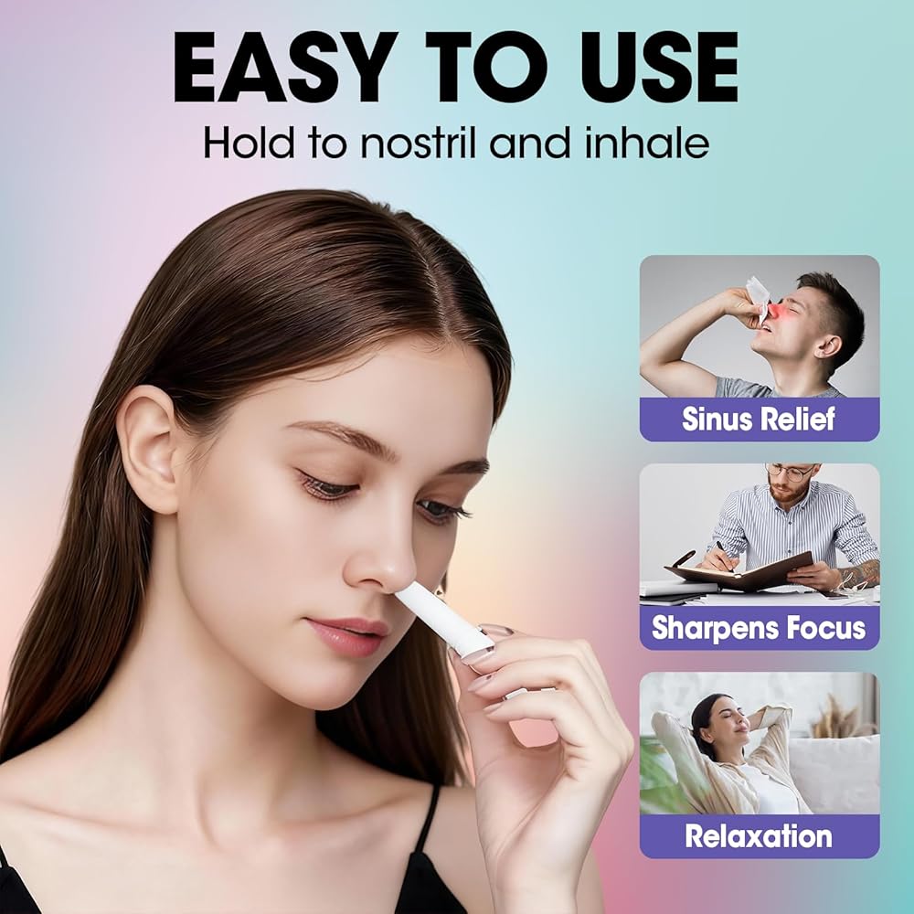 تنفس بسهولة واشعر بالانتعاش: أجهزة الاستنشاق هذه مليئة بالمنثول والزيوت العطرية، وتساعد أعواد الاستنشاق المحمولة على تخفيف احتقان الأنف وتحسين الانتباه، غير طبية.
