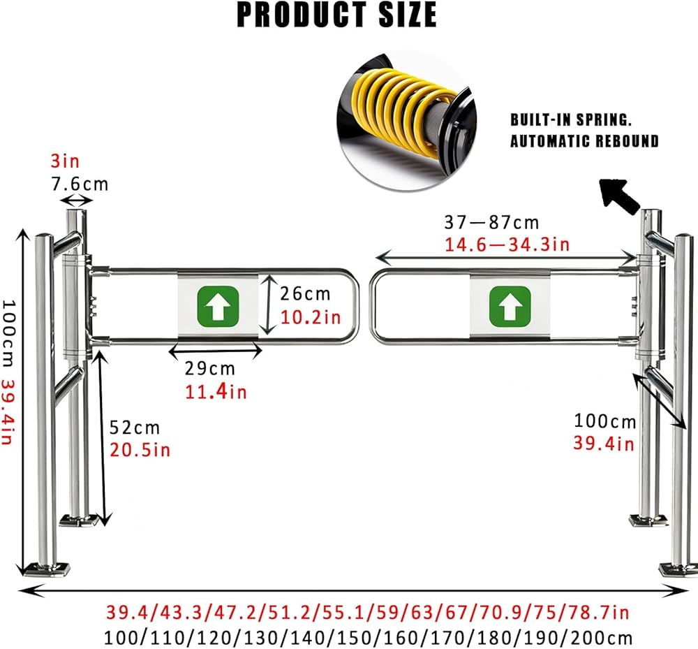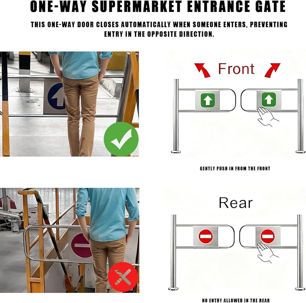 Automatic Rebound Swing Gate Wide Stainless Steel One-way Door for Store Access Manual Hand Push Entrance Gate,This stainless steel pedestrian door is designed to meet the demands of high-traffic environments, making it an ideal choice for supermarkets, factories, parks, school cafeterias, and office buildings. As a versatile spring-loaded safety swing door, it effectively manages personnel flow, ensuring a smooth and safe passage even during peak hours. **Key Features:** - **Durable Material:** Constructed from high-quality stainless steel tubing, this one-way swing entrance door is built to withstand daily use while maintaining a sleek silver finish. - **Versatile Applications:** Perfect for diverse settings such as shopping malls, warehouses, garages, and construction sites, this metal swing gate ensures safety and order in bustling spaces. - **Automatic Closing Mechanism:** The reliable spring-loaded design allows for automatic closing, minimizing the risk of accidents and enhancing security in busy areas. **Installation Information:** - Installation requires drilling, and we recommend confirming the dimensions prior to purchase to ensure a perfect fit for your space. **Package Includes:** - 1 x Swing Gate **Usage Tips:** - Please note that slight color variations may occur due to lighting conditions during photography. - Minor measurement discrepancies (1-2 cm) may also arise from manual measuring. For any inquiries or support, our dedicated customer service team is available to assist you within 24 hours, ensuring a seamless shopping experience. Upgrade your facility's safety and organization with our stainless steel pedestrian door, a practical solution for any high-traffic area.